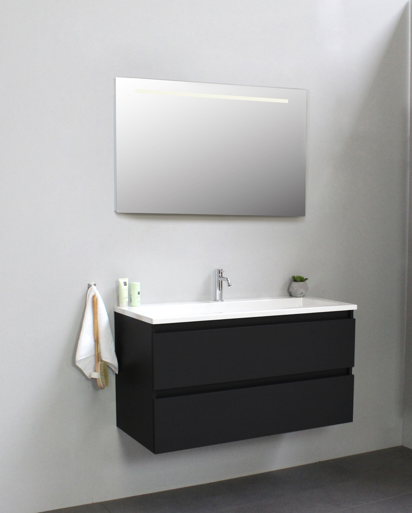 Solidline badkamermeubelset | 100cm | Acryl | Wit | 1 | Mat zwart | Spiegel met LED verlichting | Geassembleerd