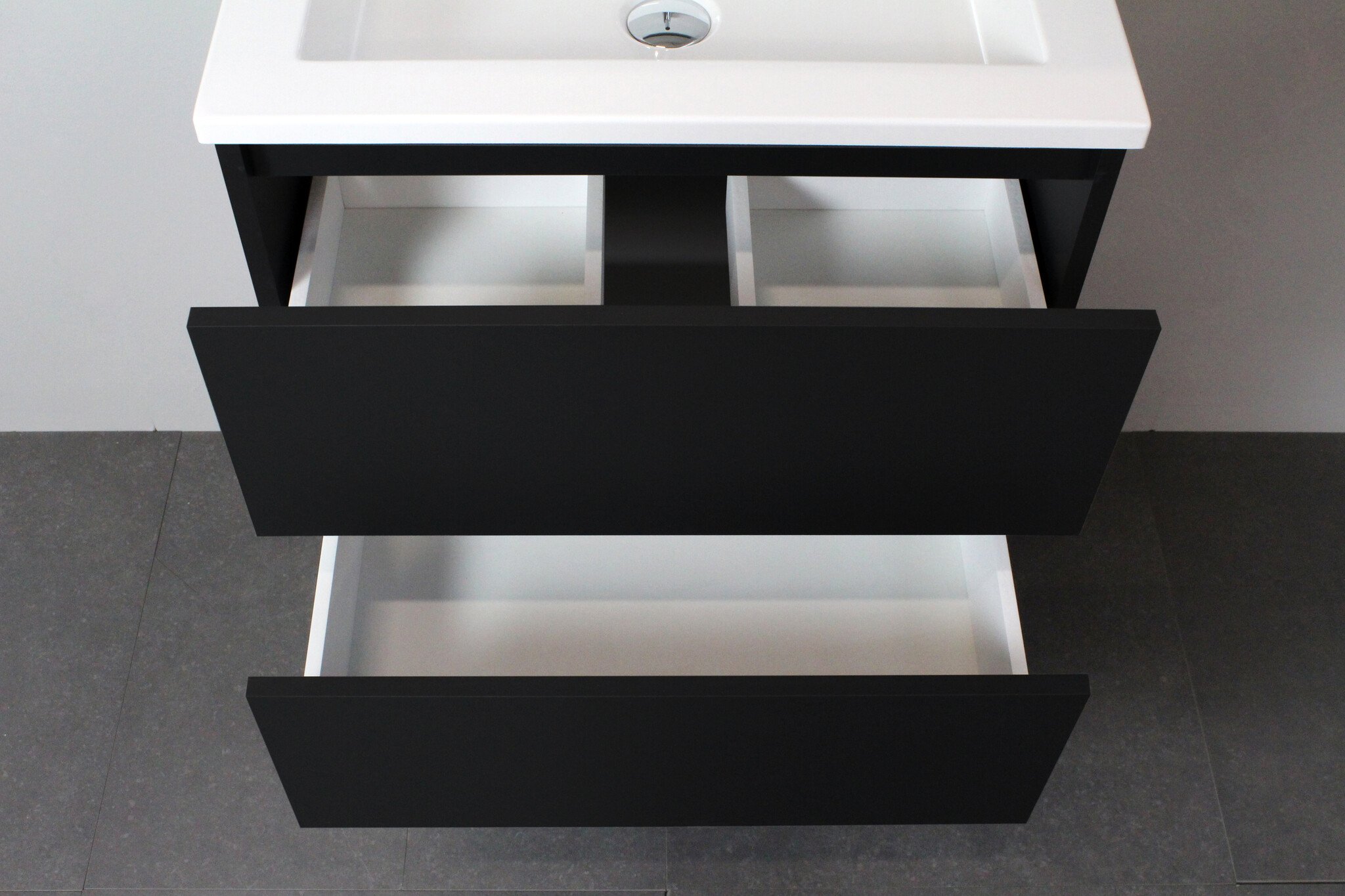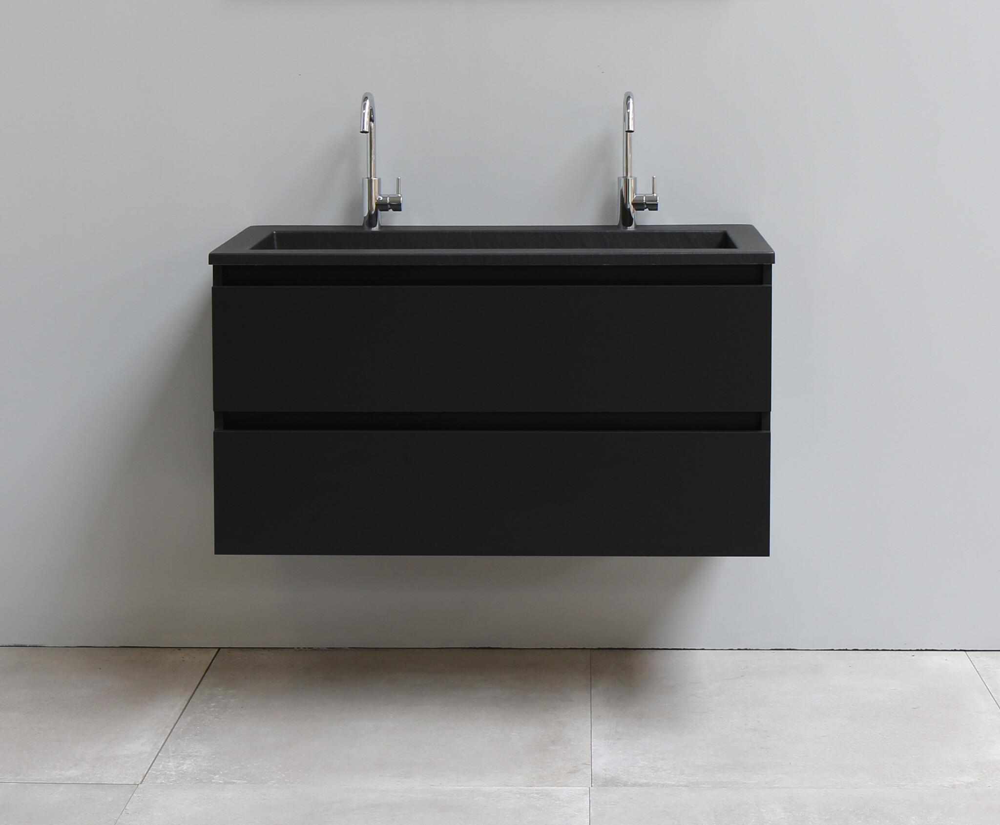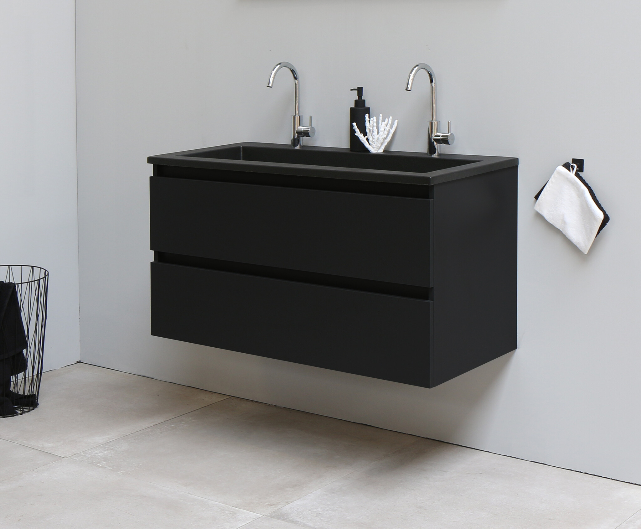 Solidline badkamermeubelset | 100cm | Acryl | Mat zwart | 2 | Mat zwart | Zonder spiegel | Geassembleerd