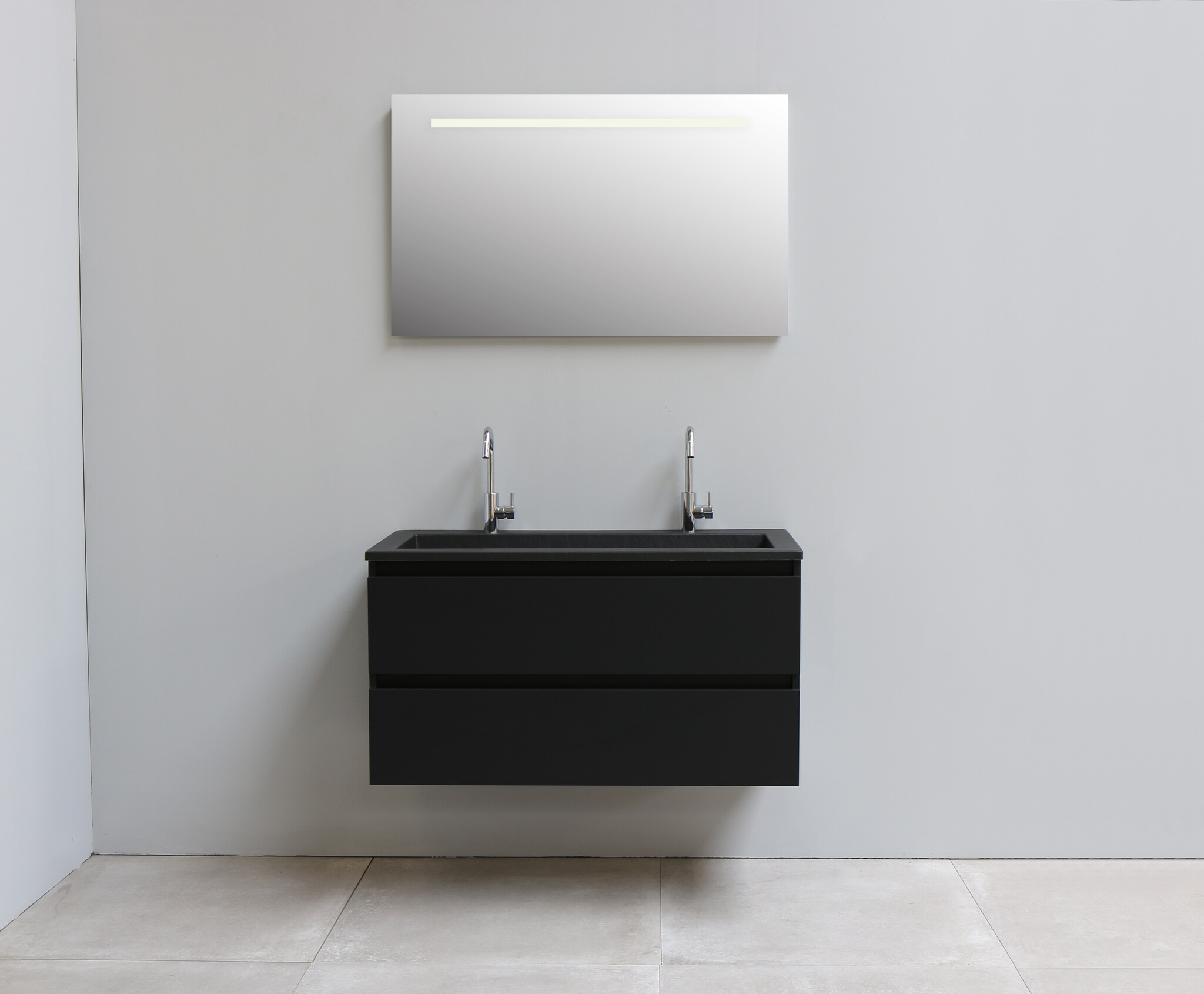 Solidline badkamermeubelset | 100cm | Acryl | Mat zwart | 2 | Mat zwart | Spiegel met LED verlichting | Geassembleerd