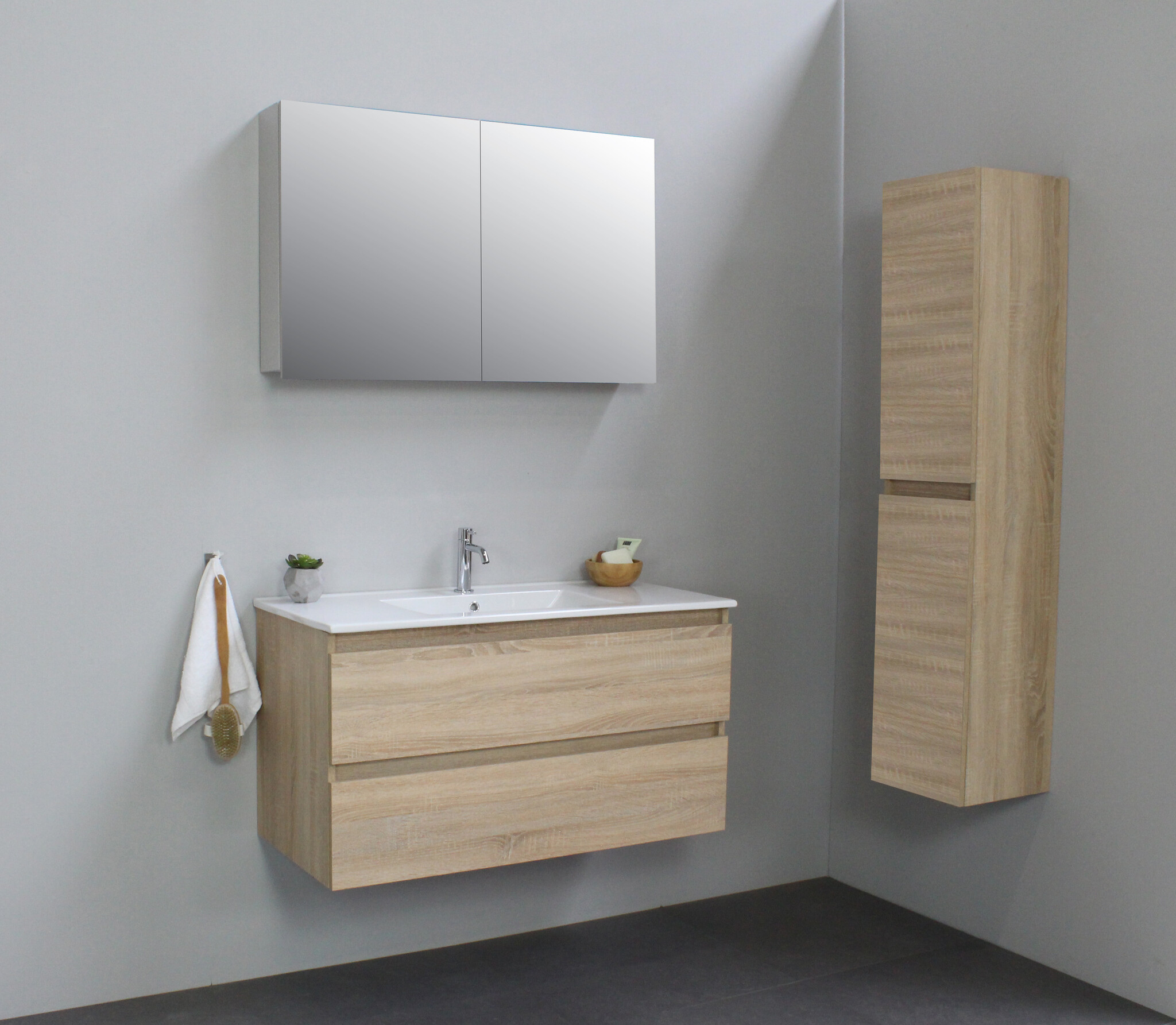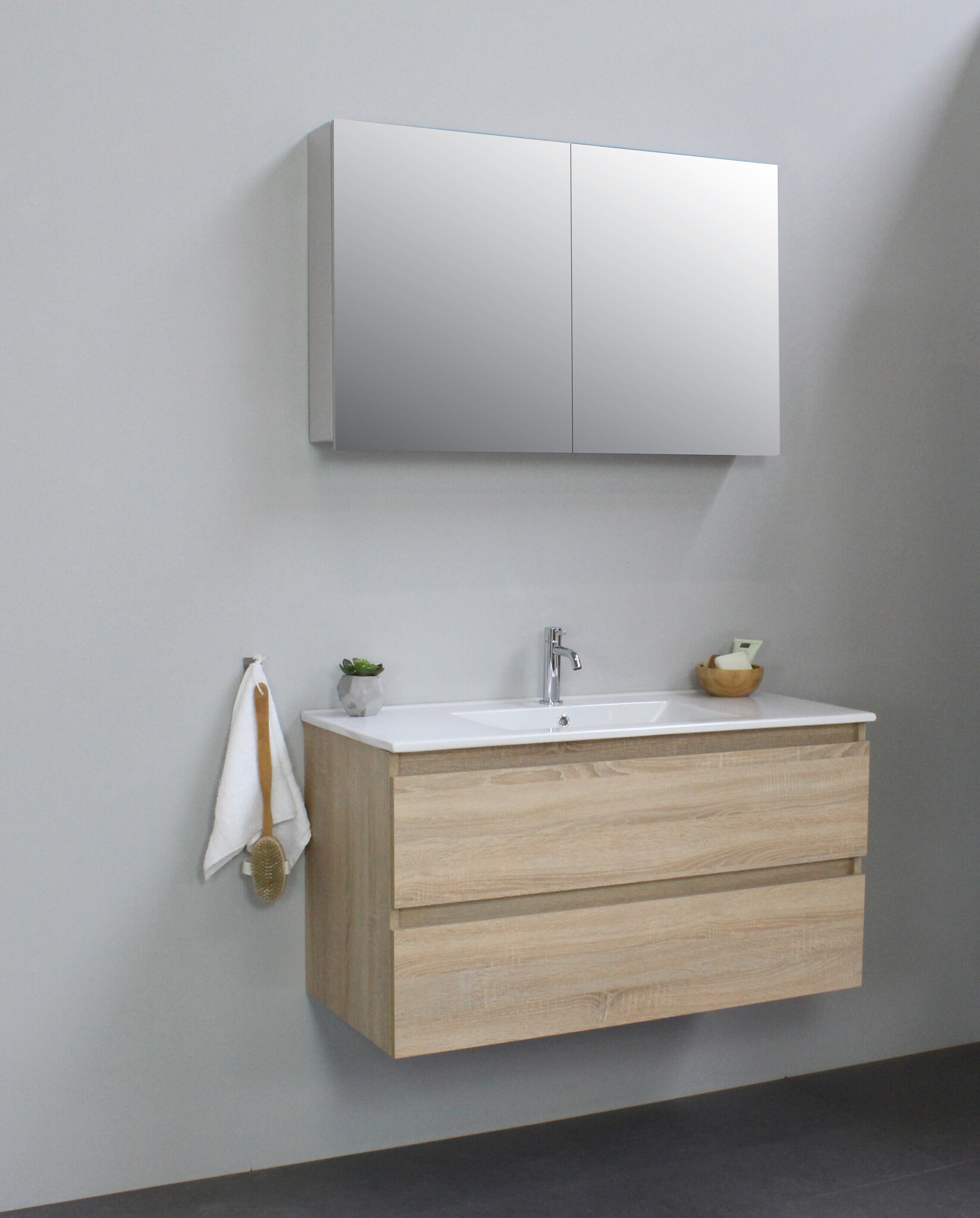 Offerte aanvraag voor Solidline badkamermeubelset | 100cm | Keramiek | Wit | 1 | Eiken | Met spiegelkast | Bouwpakket