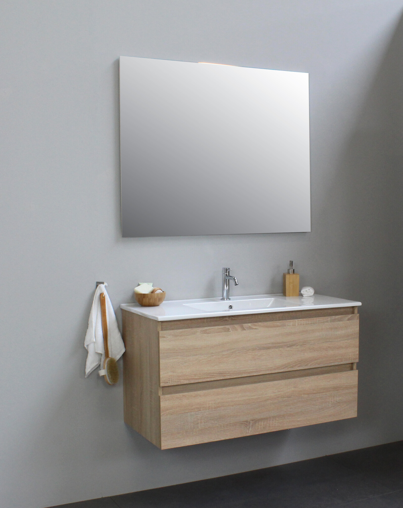Offerte aanvraag voor Solidline badkamermeubelset | 100cm | Keramiek | Wit | 1 | Eiken | Standaard spiegel | Geassembleerd