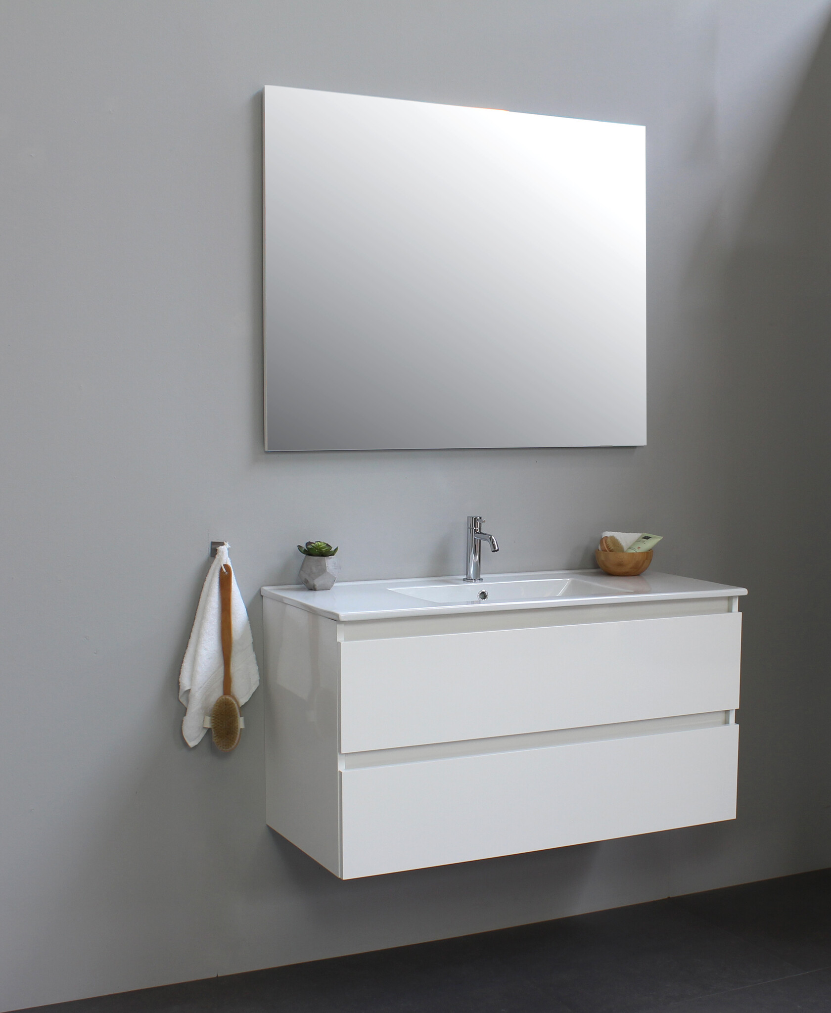 Offerte aanvraag voor Solidline badkamermeubelset | 100cm | Keramiek | Wit | 1 | Hoogglans wit | Standaard spiegel | Geassembleerd