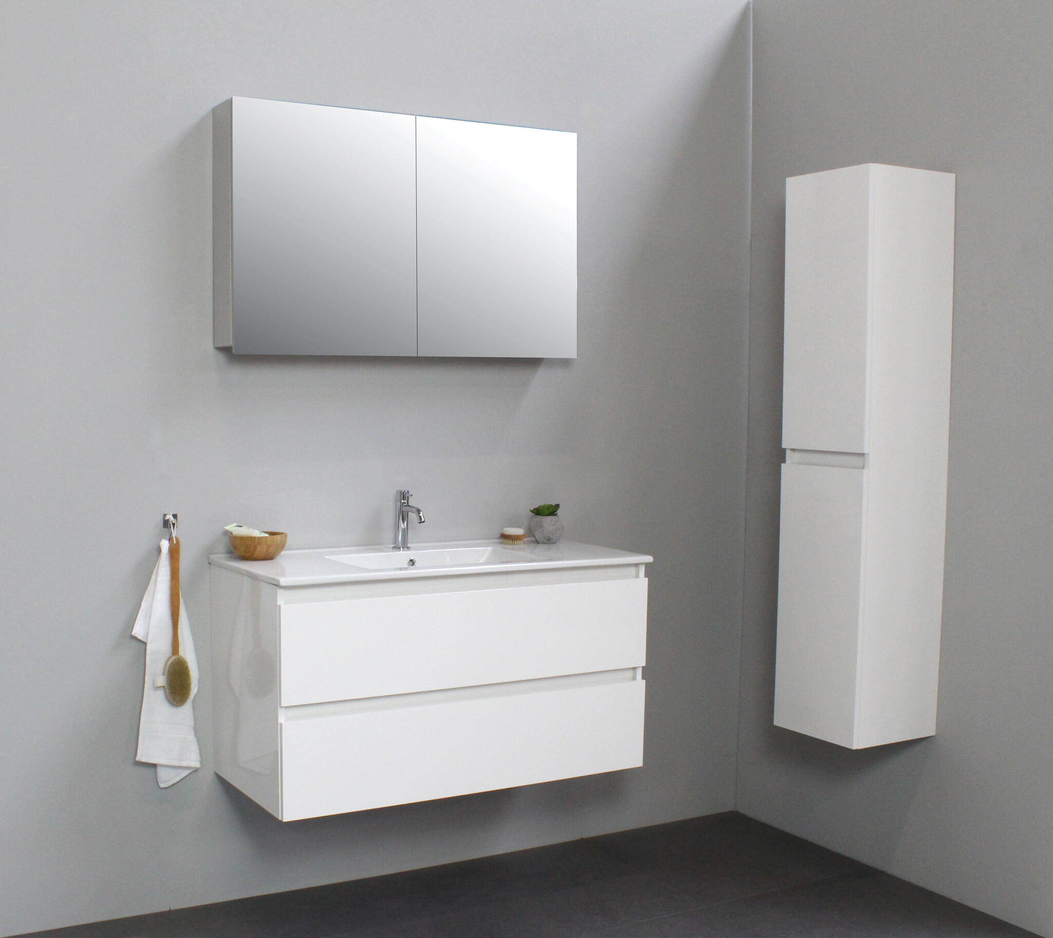 Solidline badkamermeubelset | 100cm | Keramiek | Wit | 1 | Hoogglans wit | Met spiegelkast | Geassembleerd