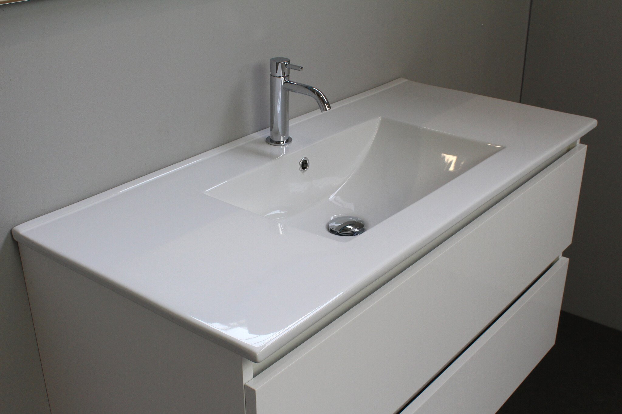 Offerte aanvraag voor Solidline badkamermeubelset | 100cm | Keramiek | Wit | 1 | Hoogglans wit | Met spiegelkast | Geassembleerd