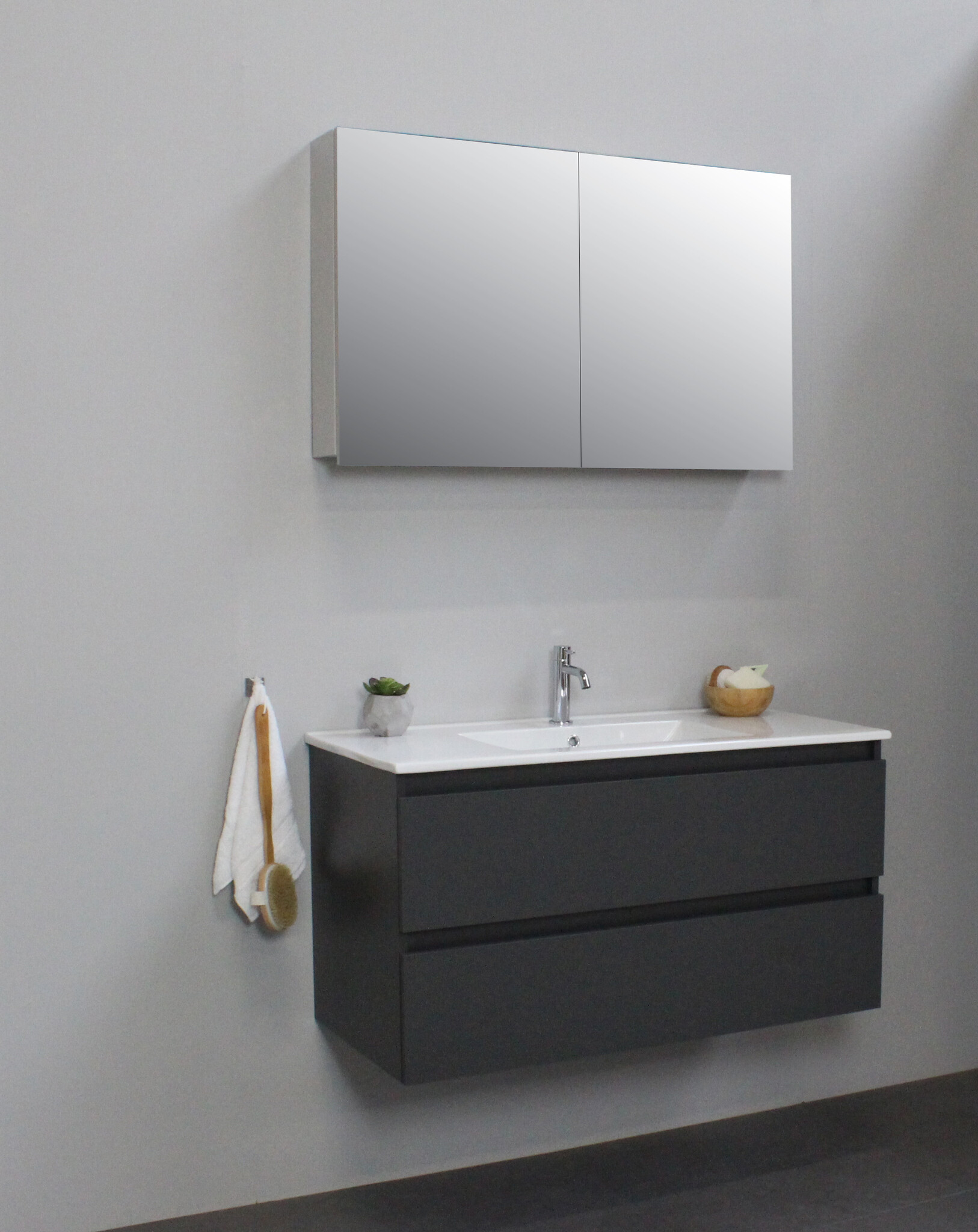 Offerte aanvraag voor Solidline badkamermeubelset | 100cm | Keramiek | Wit | 1 | Mat antraciet | Met spiegelkast | Geassembleerd