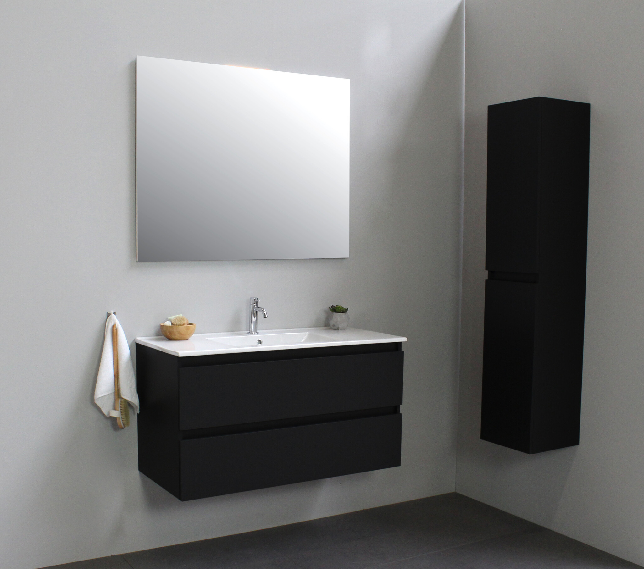 Solidline badkamermeubelset | 100cm | Keramiek | Wit | 1 | Mat zwart | Zonder spiegel | Geassembleerd