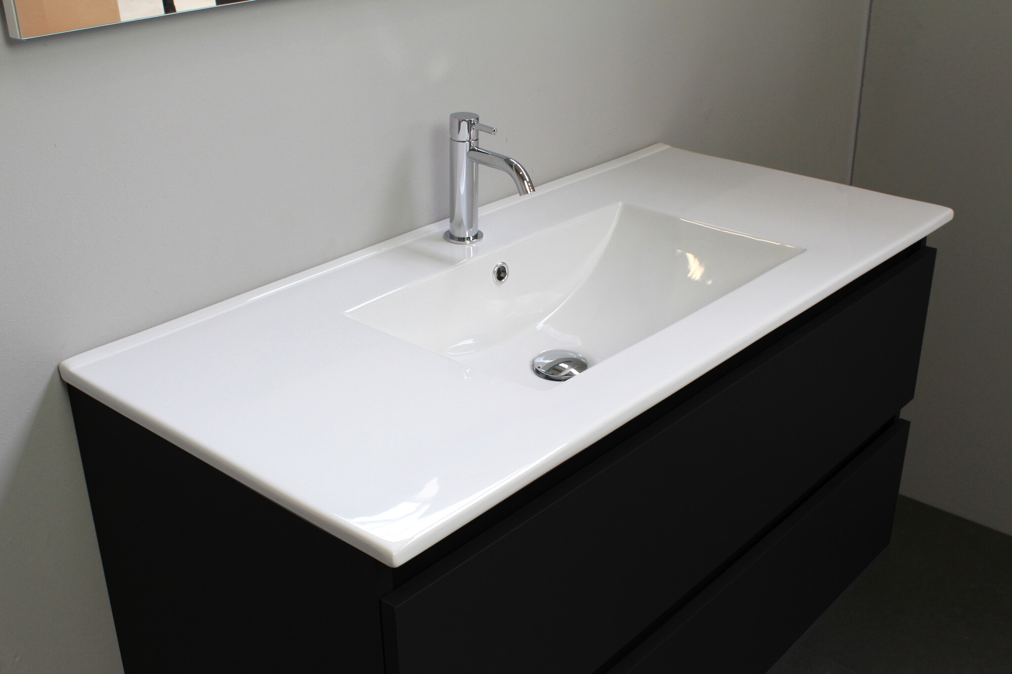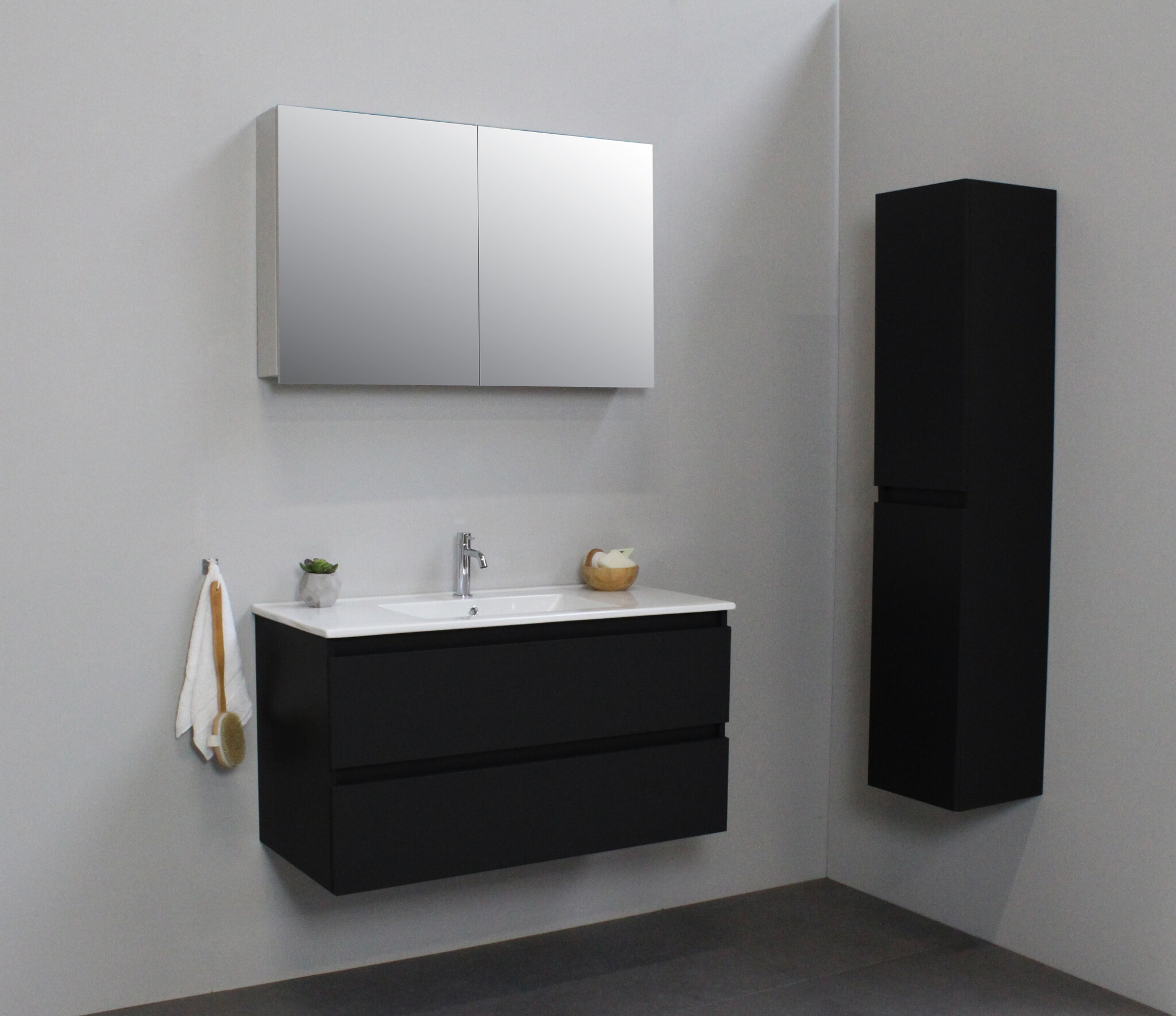 Solidline badkamermeubelset | 100cm | Keramiek | Wit | 1 | Mat zwart | Met spiegelkast | Geassembleerd