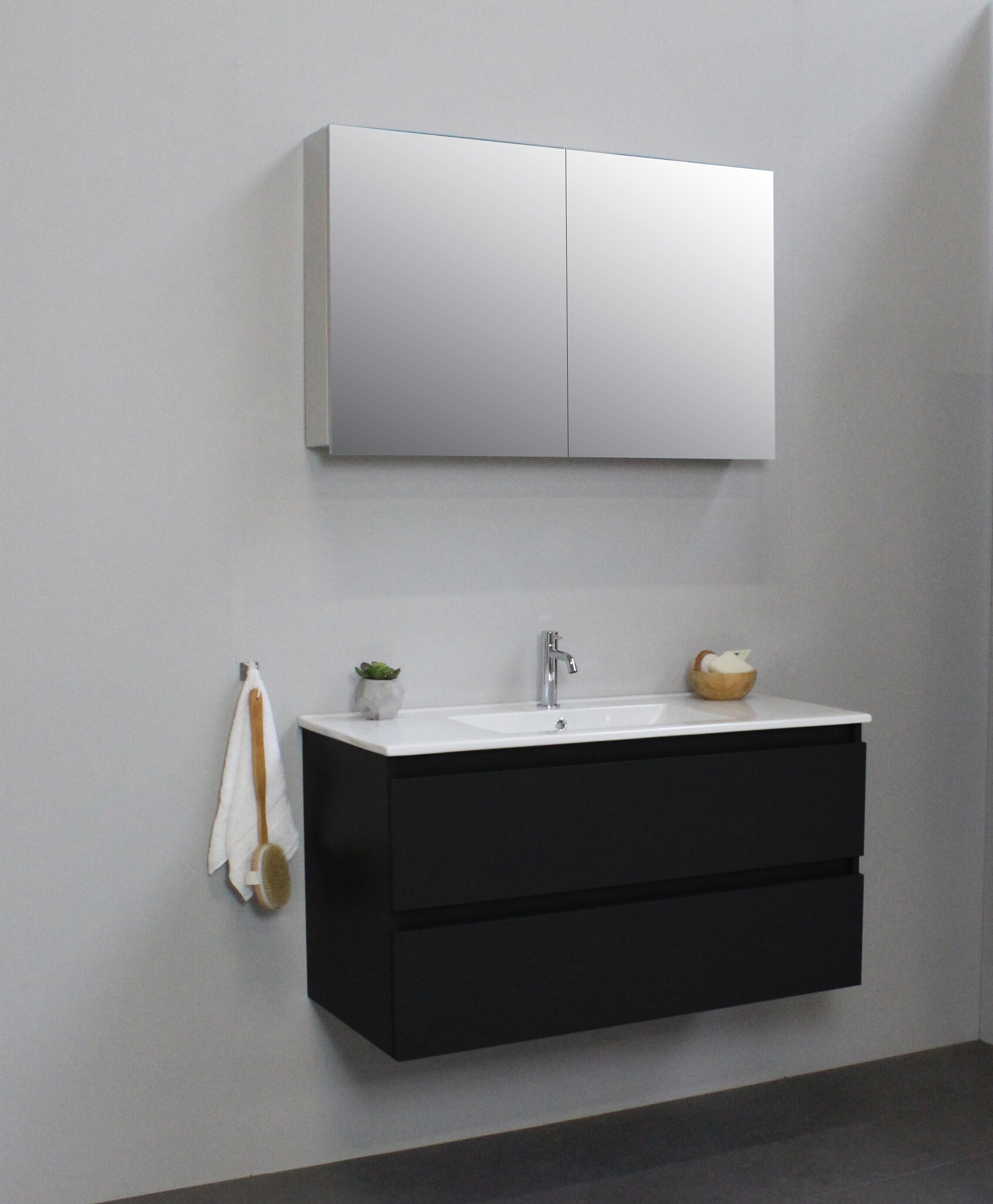 Offerte aanvraag voor Solidline badkamermeubelset | 100cm | Keramiek | Wit | 1 | Mat zwart | Met spiegelkast | Geassembleerd