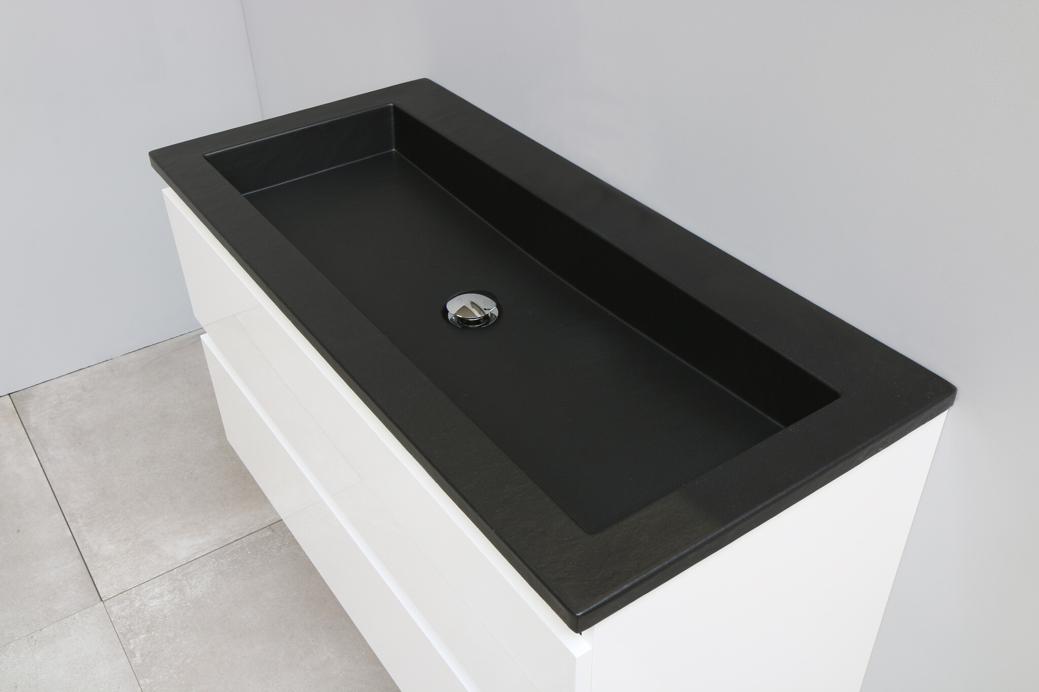 Offerte aanvraag voor Solidline badkamermeubelset | 100cm | Keramiek | Mat zwart | 0 | Hoogglans wit | Standaard spiegel | Geassembleerd