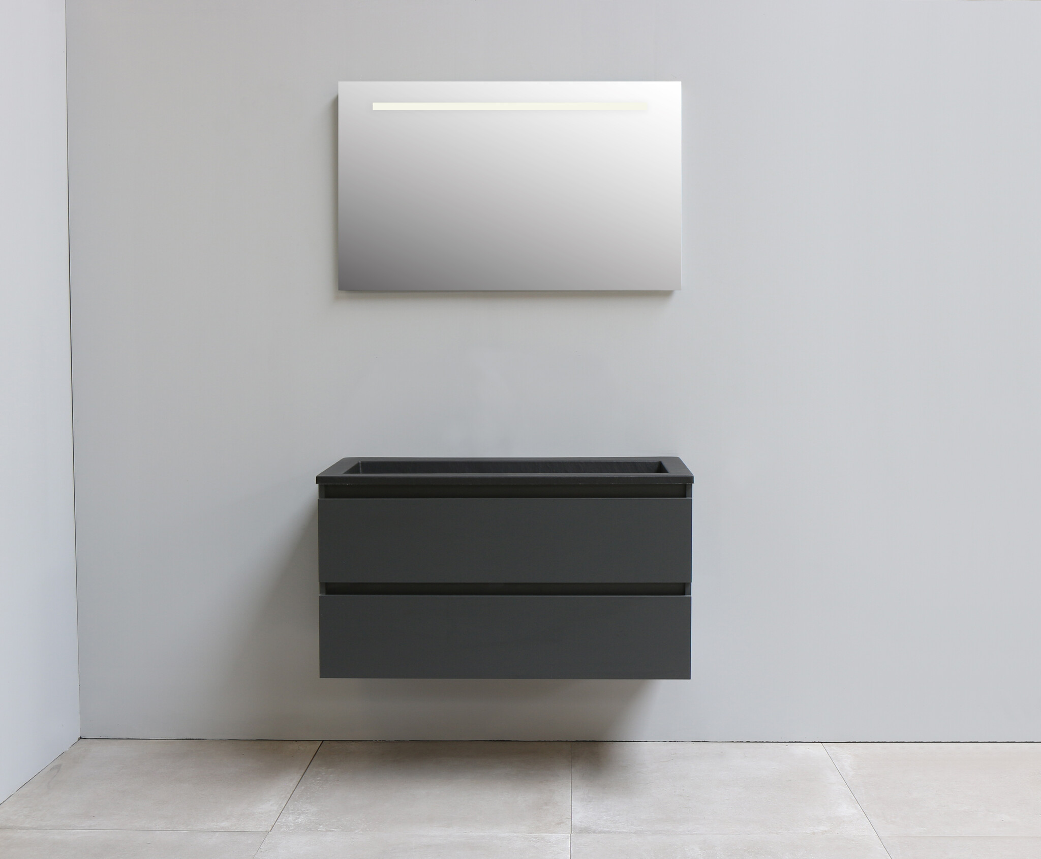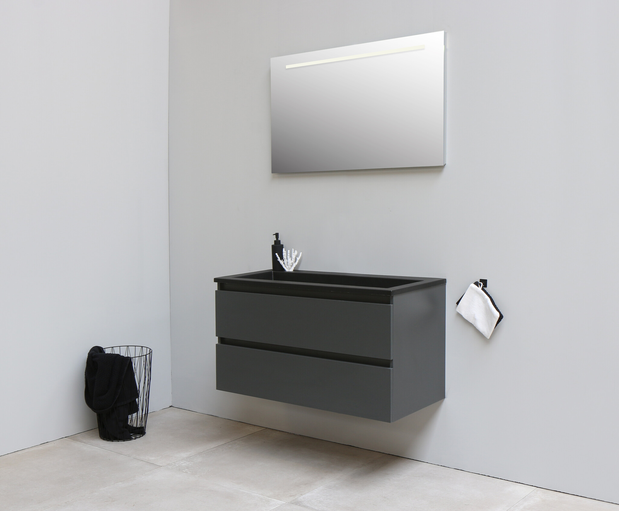 Solidline badkamermeubelset | 100cm | Keramiek | Mat zwart | 0 | Mat antraciet | Spiegel met LED verlichting | Geassembleerd