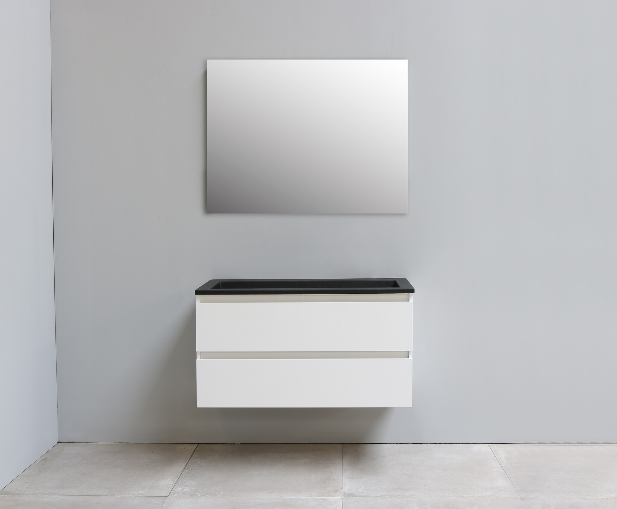 Offerte aanvraag voor Solidline badkamermeubelset | 100cm | Keramiek | Mat zwart | 1 | Hoogglans wit | Standaard spiegel | Geassembleerd