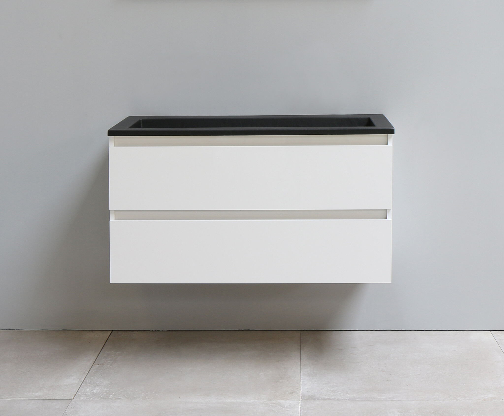 Solidline badkamermeubelset - 100cm - Keramiek - Mat zwart - 1 - Hoogglans wit - Zonder spiegel - Bouwpakket