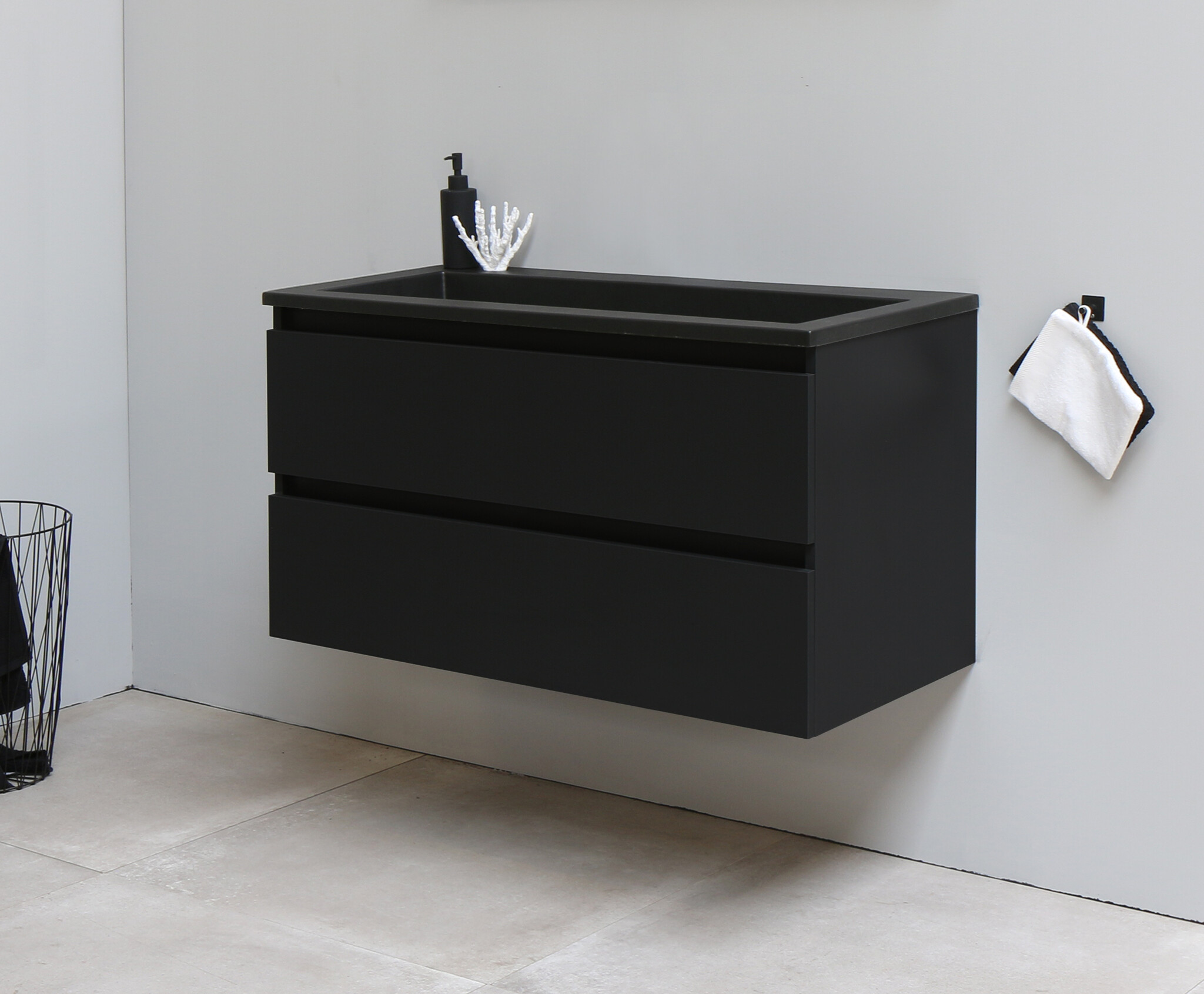 Solidline badkamermeubelset | 100cm | Keramiek | Mat zwart | 1 | Mat zwart | Zonder spiegel | Geassembleerd