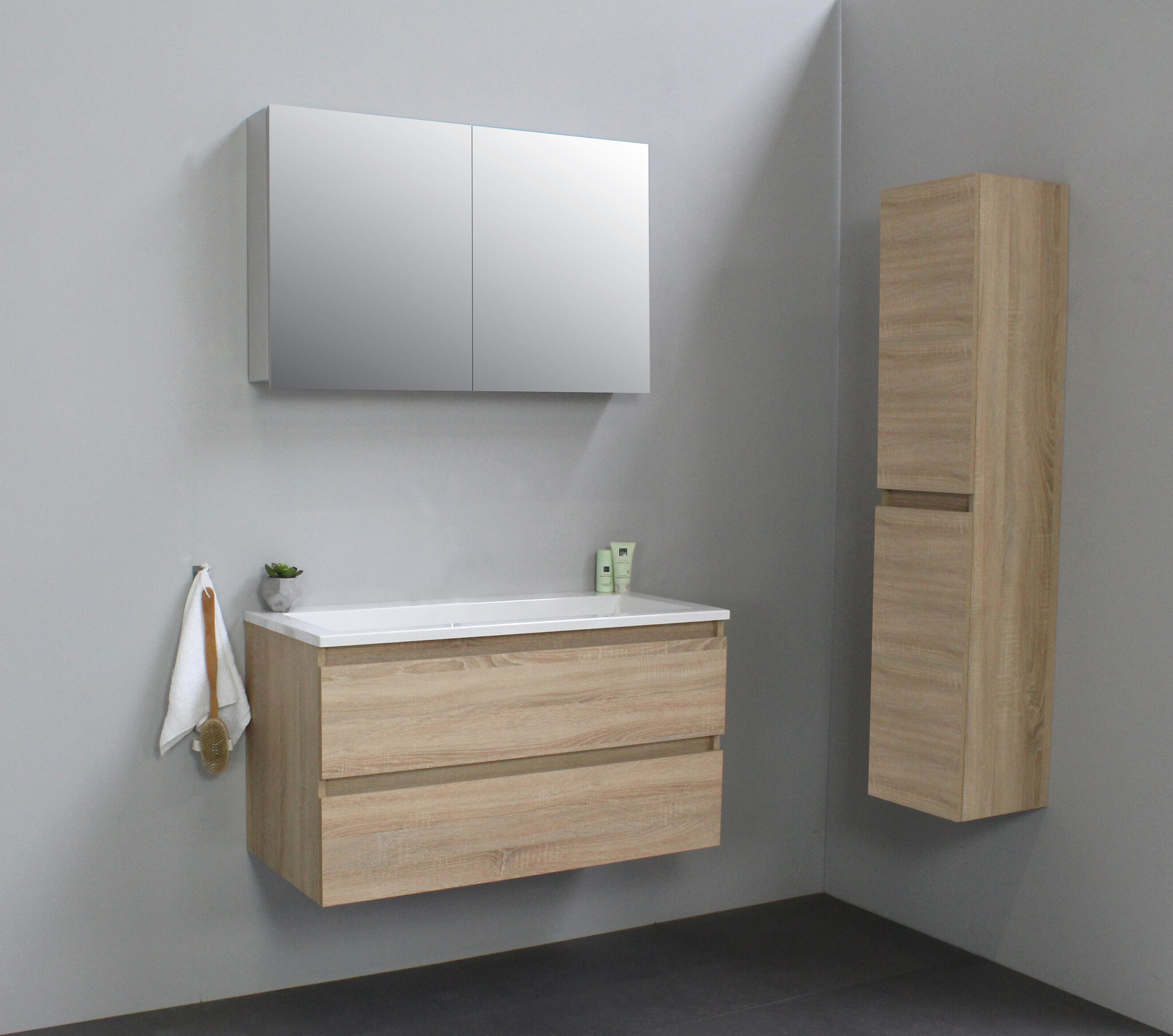Solidline badkamermeubelset | 100cm | Keramiek | Wit | 0 | Eiken | Met spiegelkast | Bouwpakket