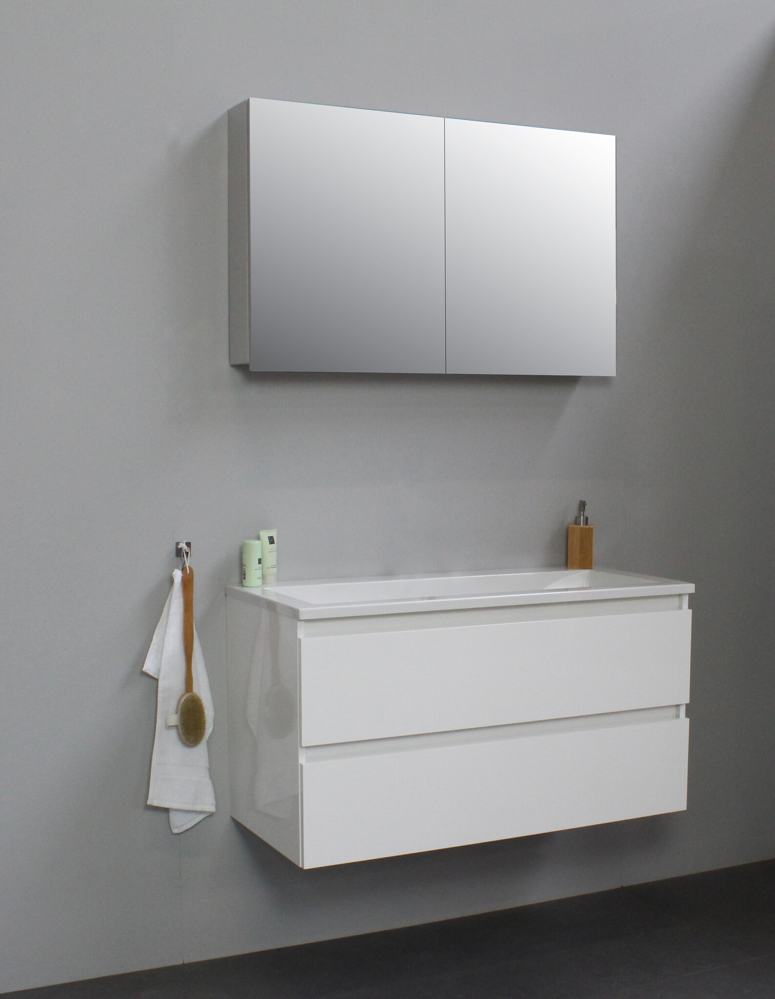 Offerte aanvraag voor Solidline badkamermeubelset | 100cm | Keramiek | Wit | 0 | Hoogglans wit | Met spiegelkast | Geassembleerd
