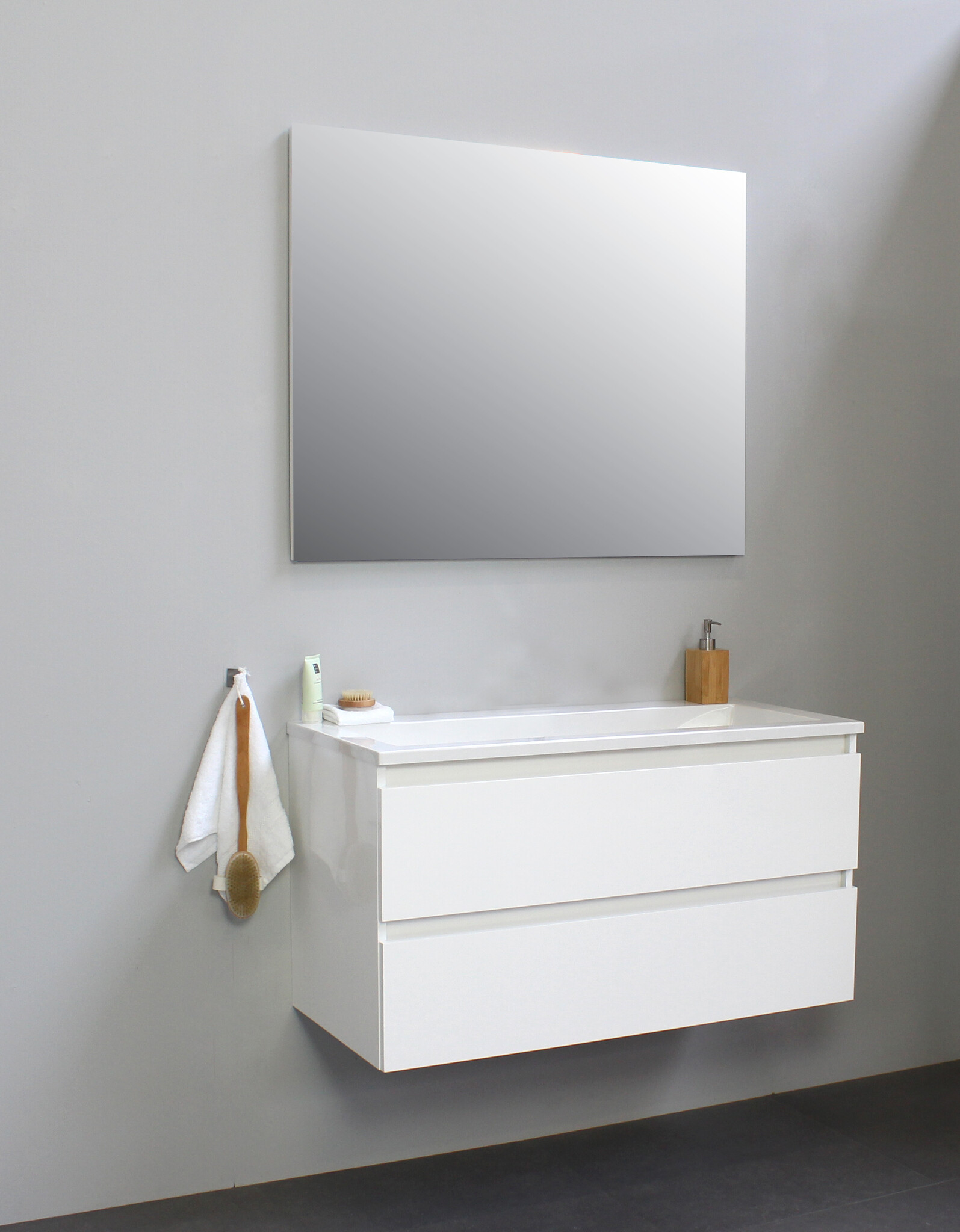 Solidline badkamermeubelset | 100cm | Keramiek | Wit | 0 | Hoogglans wit | Standaard spiegel | Bouwpakket