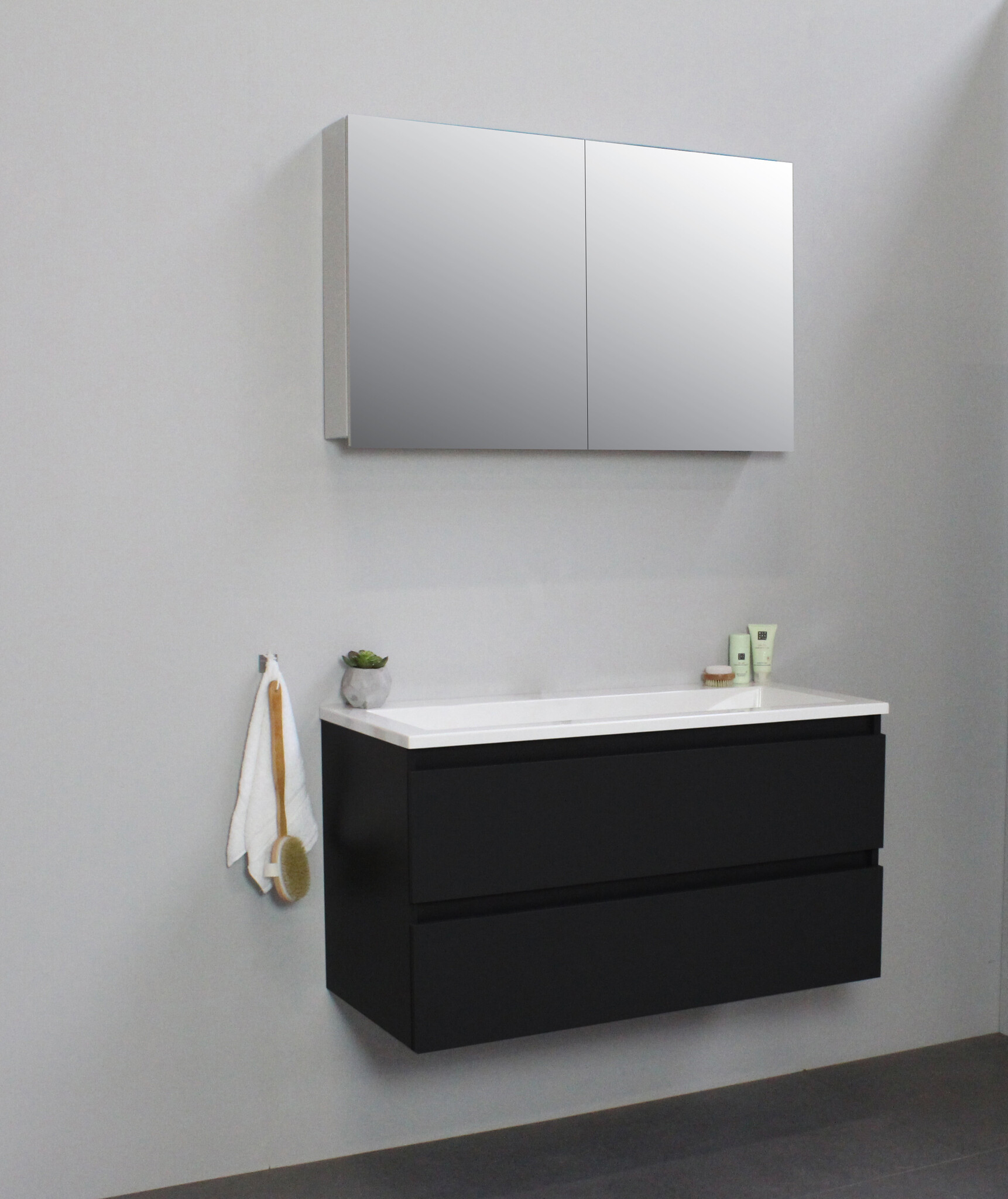 Solidline badkamermeubelset | 100cm | Keramiek | Wit | 0 | Mat zwart | Met spiegelkast | Bouwpakket