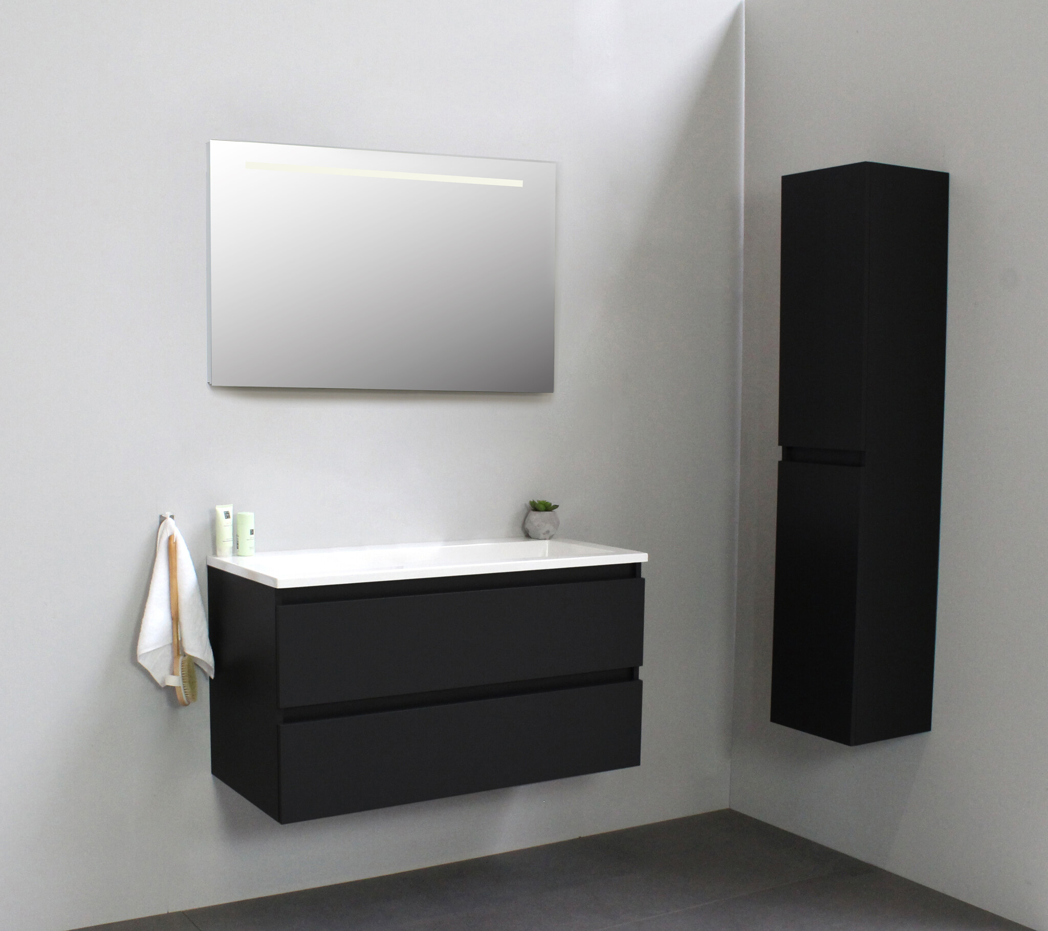 Solidline badkamermeubelset | 100cm | Keramiek | Wit | 0 | Mat zwart | Spiegel met LED verlichting | Bouwpakket