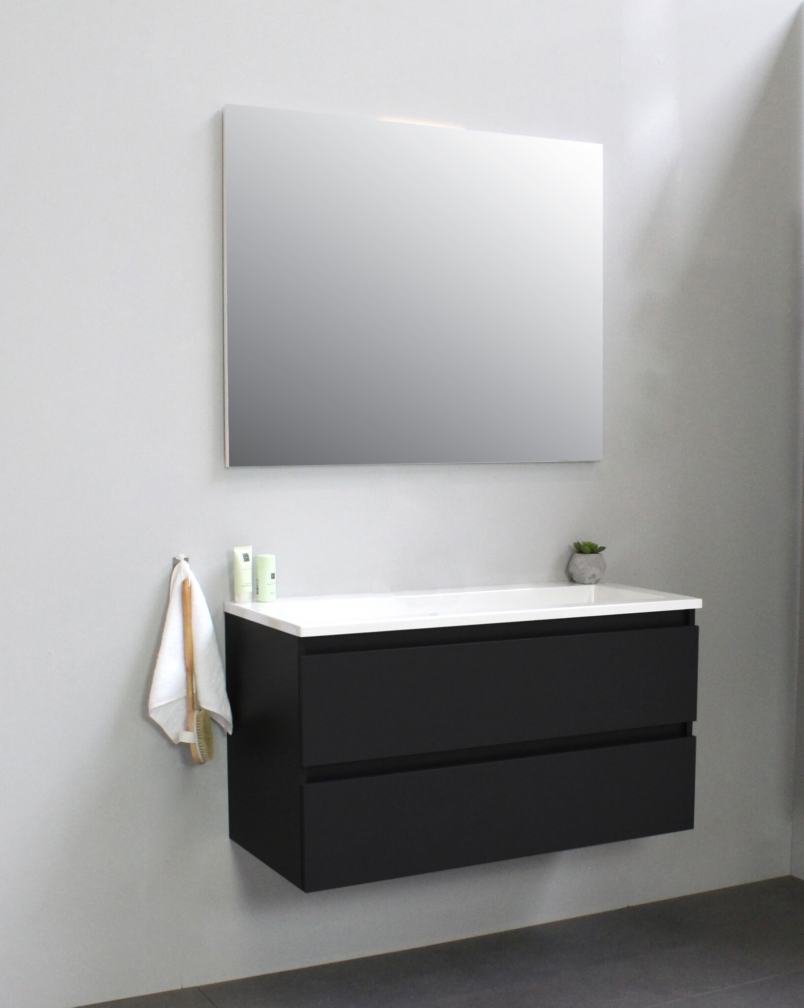 Solidline badkamermeubelset | 100cm | Keramiek | Wit | 0 | Mat zwart | Standaard spiegel | Geassembleerd