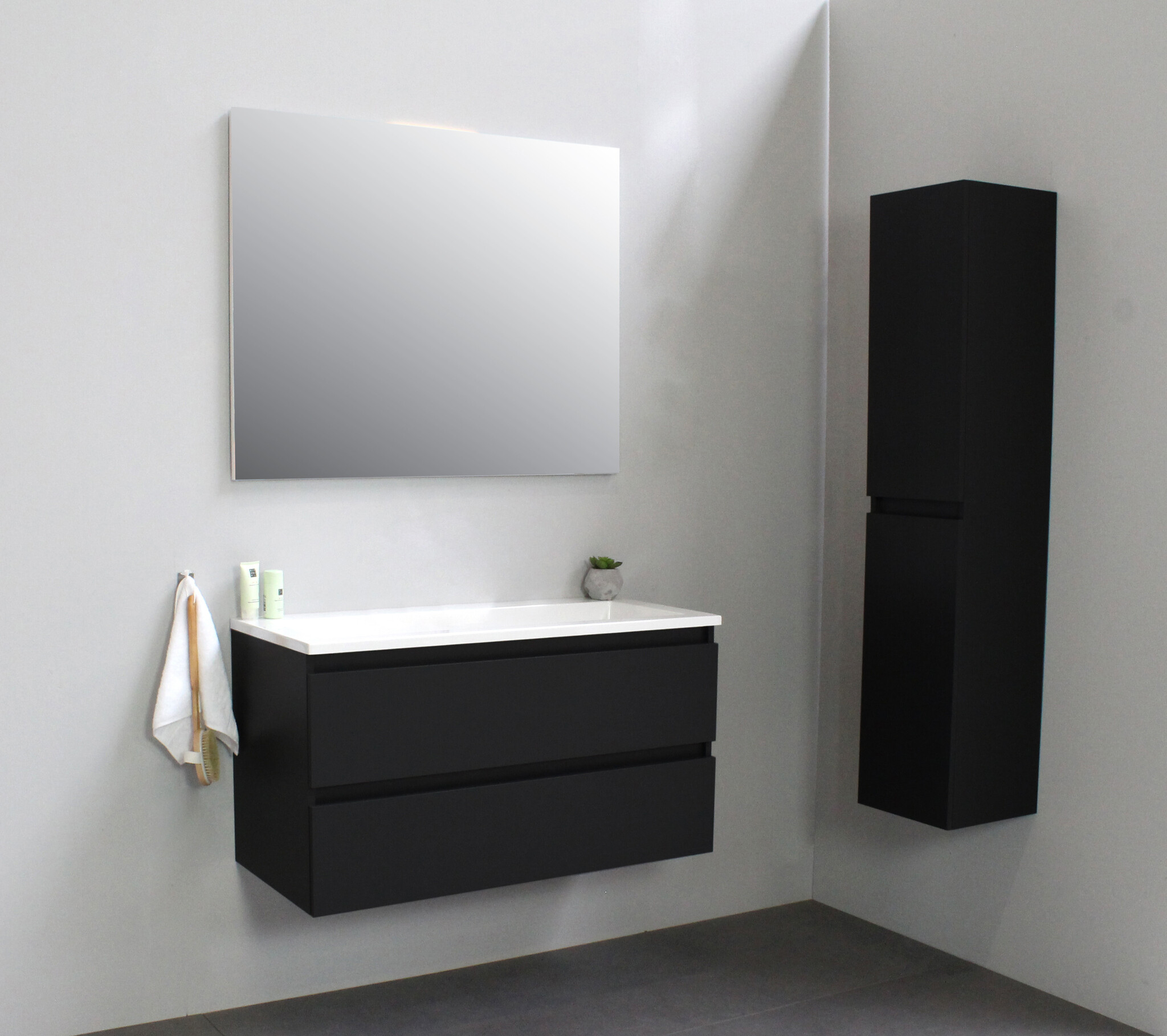 Solidline badkamermeubelset | 100cm | Keramiek | Wit | 0 | Mat zwart | Zonder spiegel | Bouwpakket