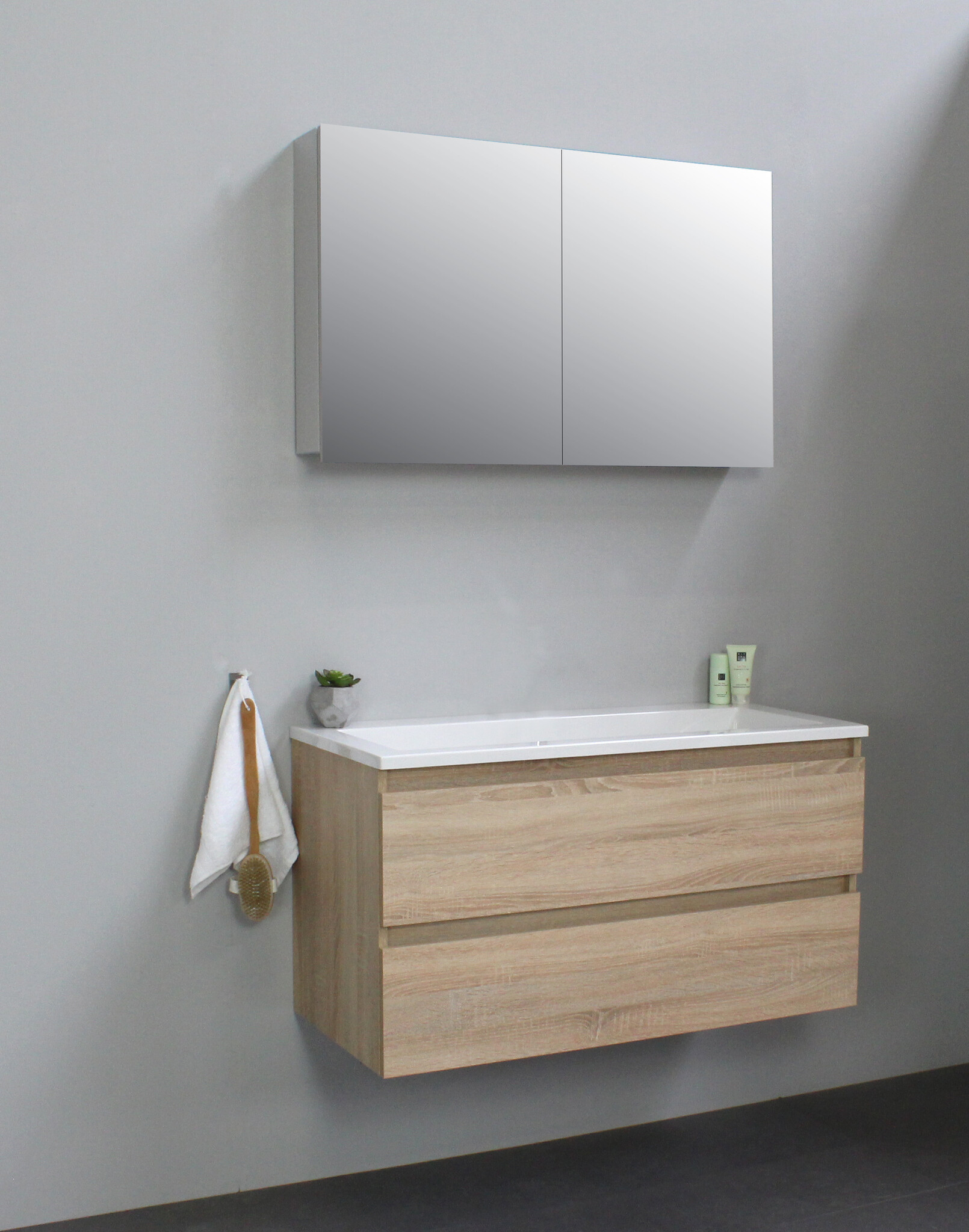 Offerte aanvraag voor Solidline badkamermeubelset | 100cm | Keramiek | Wit | 2 | Eiken | Met spiegelkast | Bouwpakket