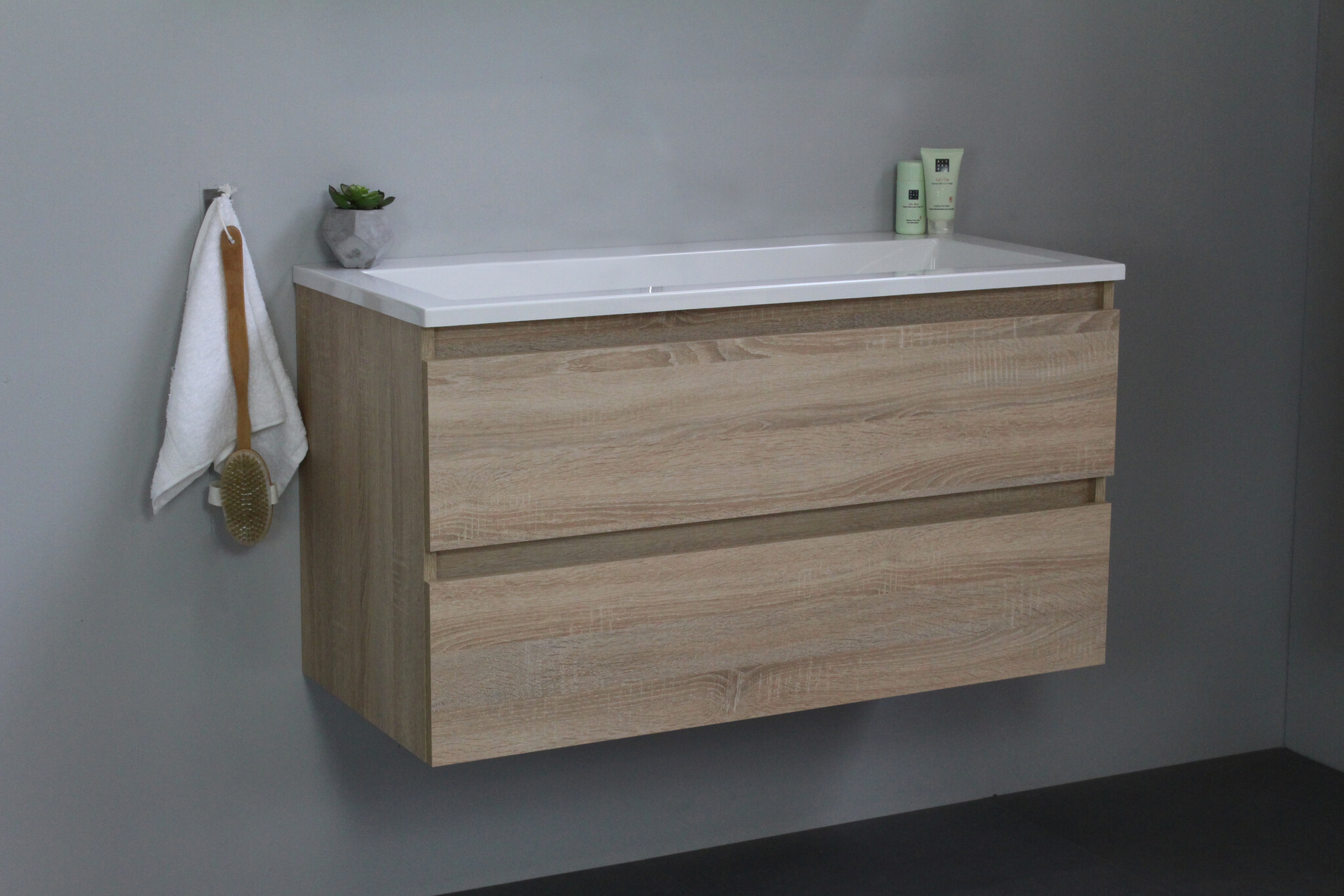 Offerte aanvraag voor Solidline badkamermeubelset | 100cm | Keramiek | Wit | 2 | Eiken | Zonder spiegel | Bouwpakket