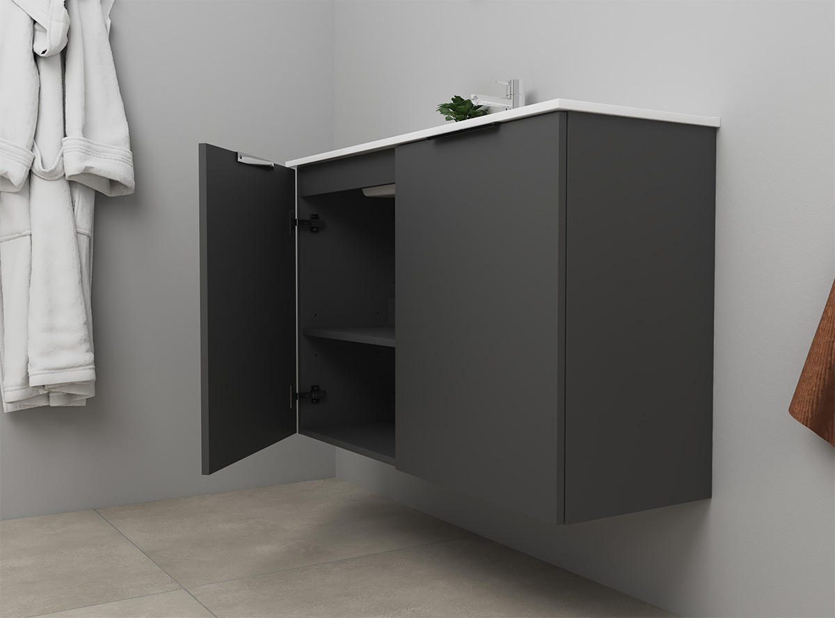 Badkamermeubelset 100cm – Mat antraciet met spiegel en indirecte LED-verlichting