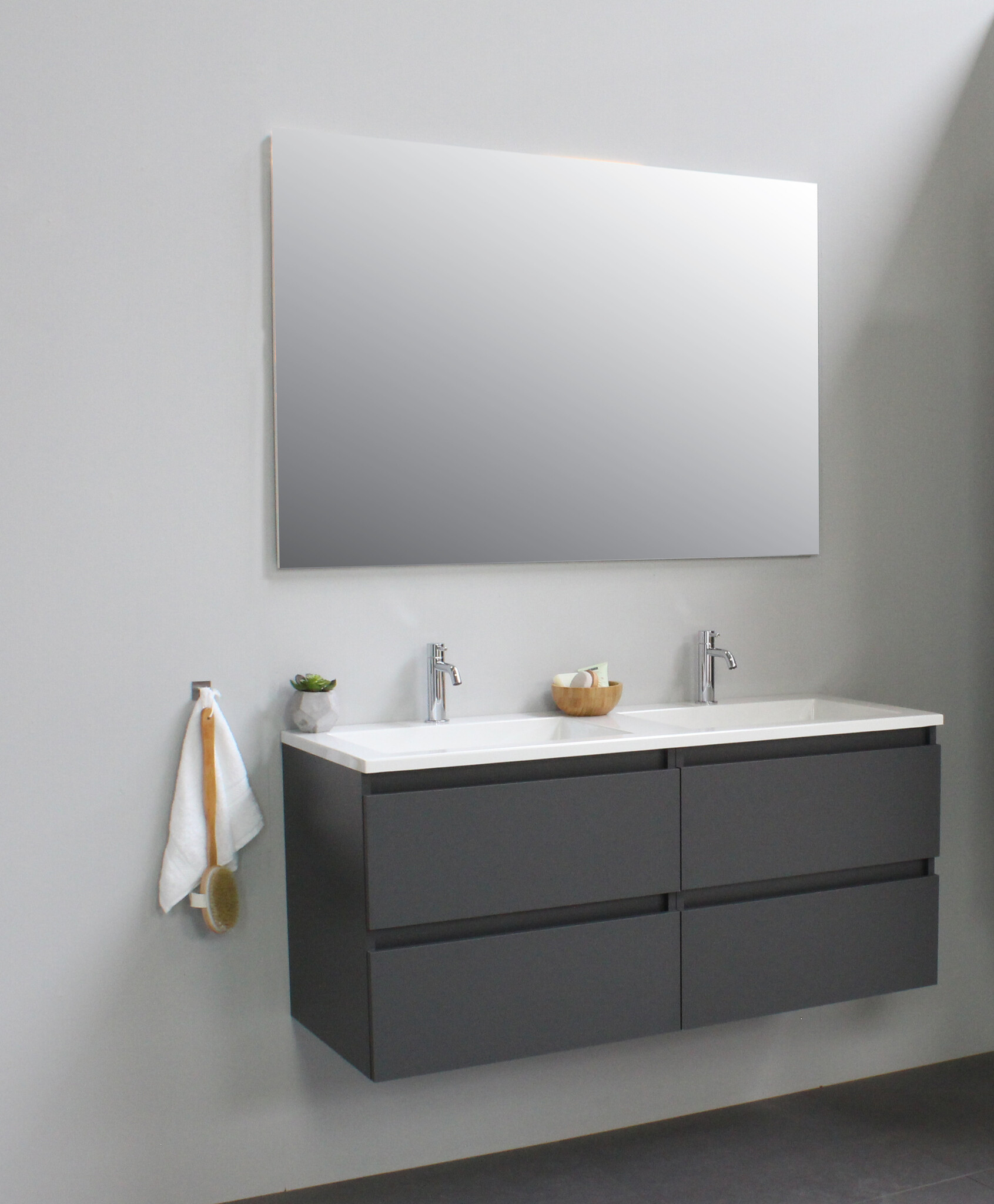 Solidline badkamermeubelset | 120cm | Acryl | Wit | 2 | Mat antraciet | Standaard spiegel | Bouwpakket
