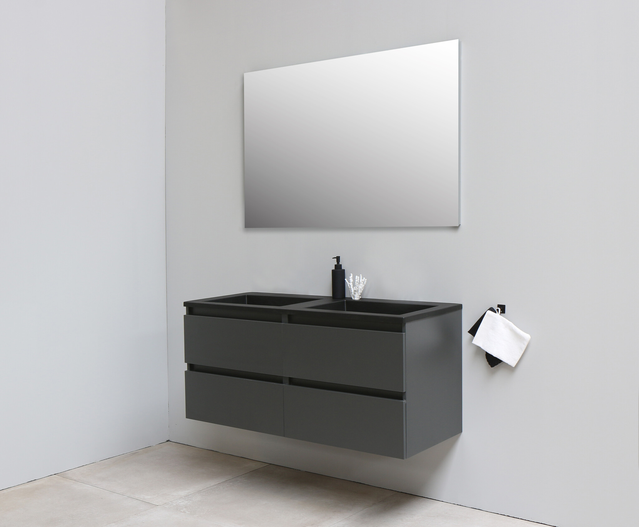 Solidline badkamermeubelset | 120cm | Acryl | Mat zwart | 0 | Mat antraciet | Standaard spiegel | Bouwpakket