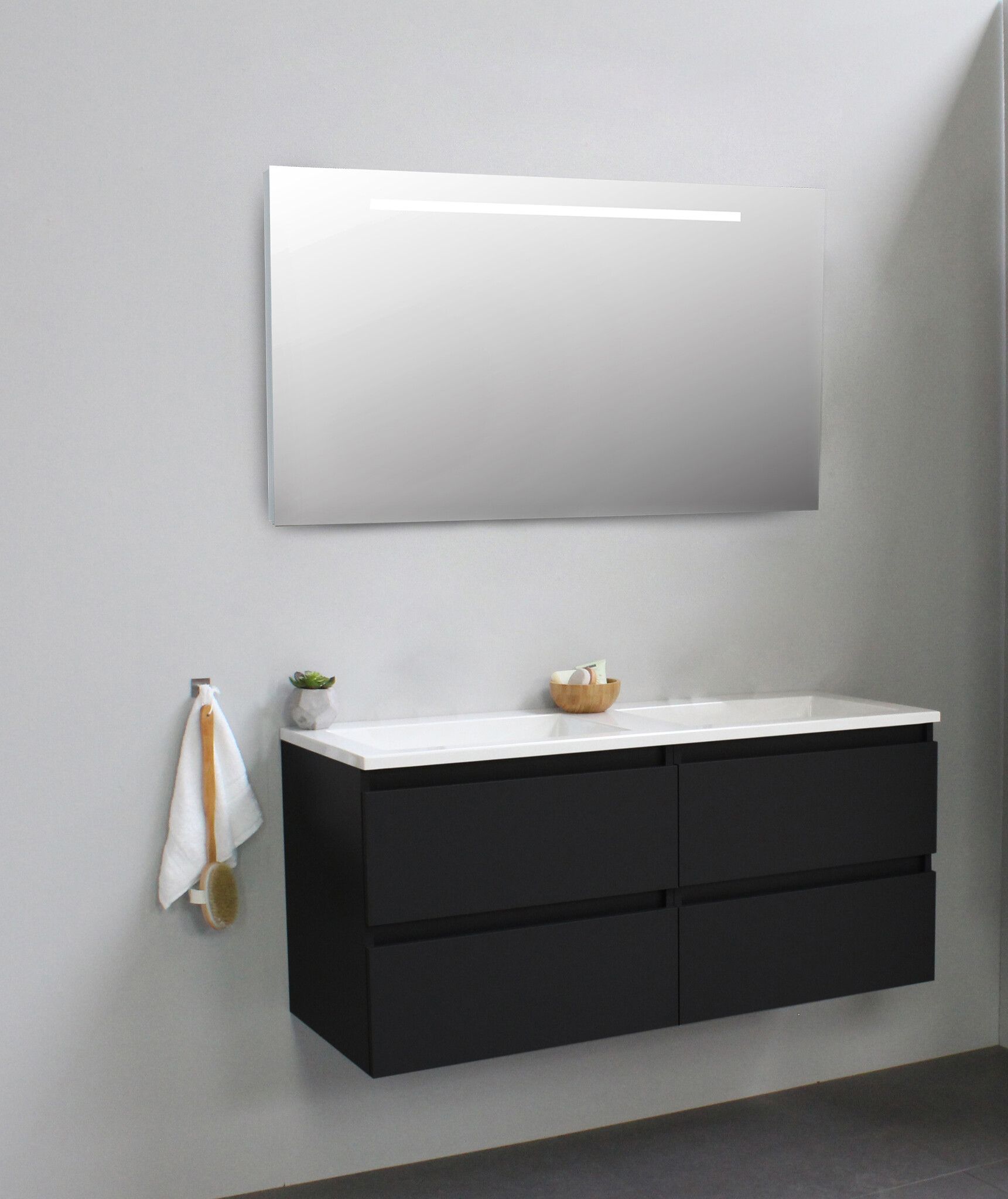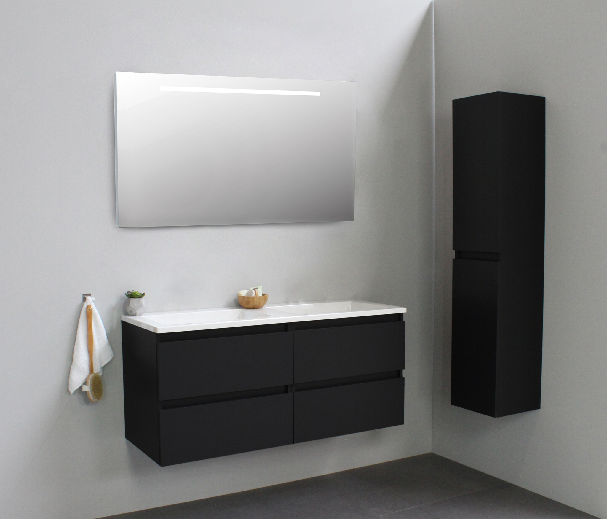 Solidline badkamermeubelset | 120cm | Acryl | Wit | 0 | Mat zwart | Spiegel met LED verlichting | Bouwpakket
