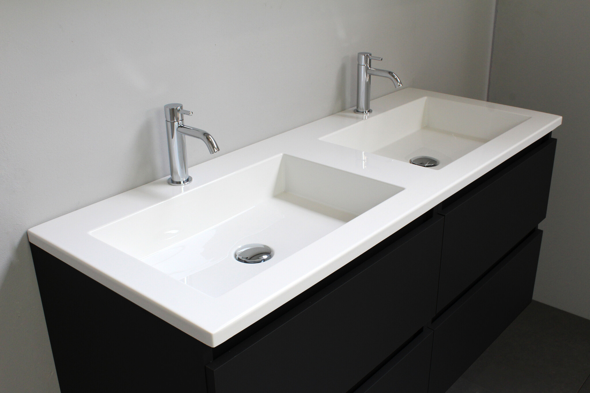 Solidline badkamermeubelset - 120cm - Acryl - Wit - 2 - Mat zwart - Zonder spiegel - Bouwpakket