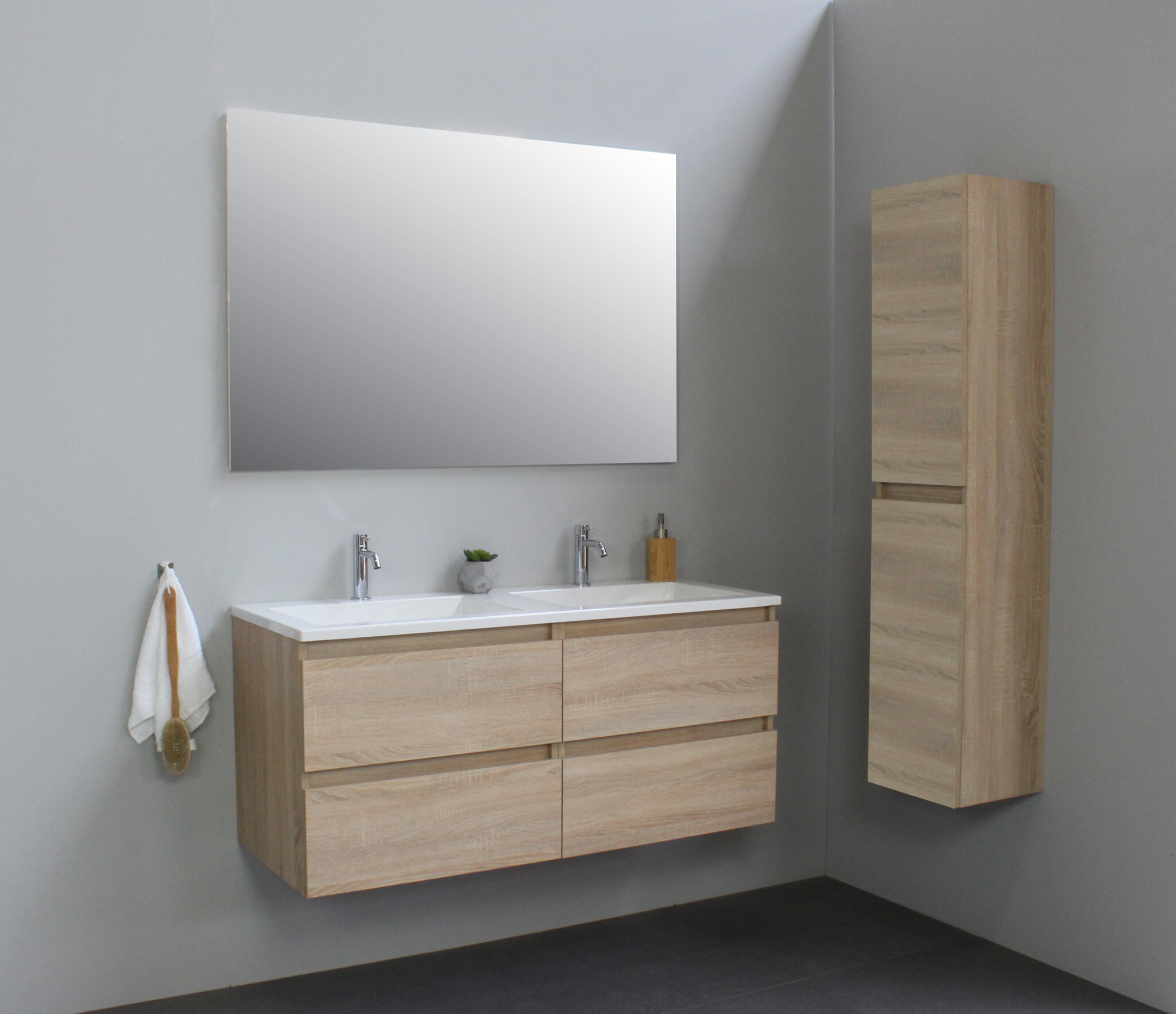 Offerte aanvraag voor Solidline badkamermeubelset | 120cm | Acryl | Wit | 2 | Eiken | Standaard spiegel | Geassembleerd