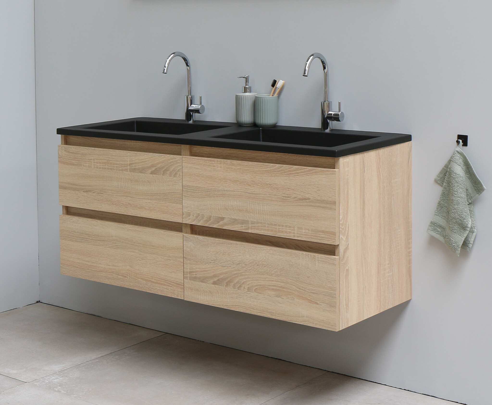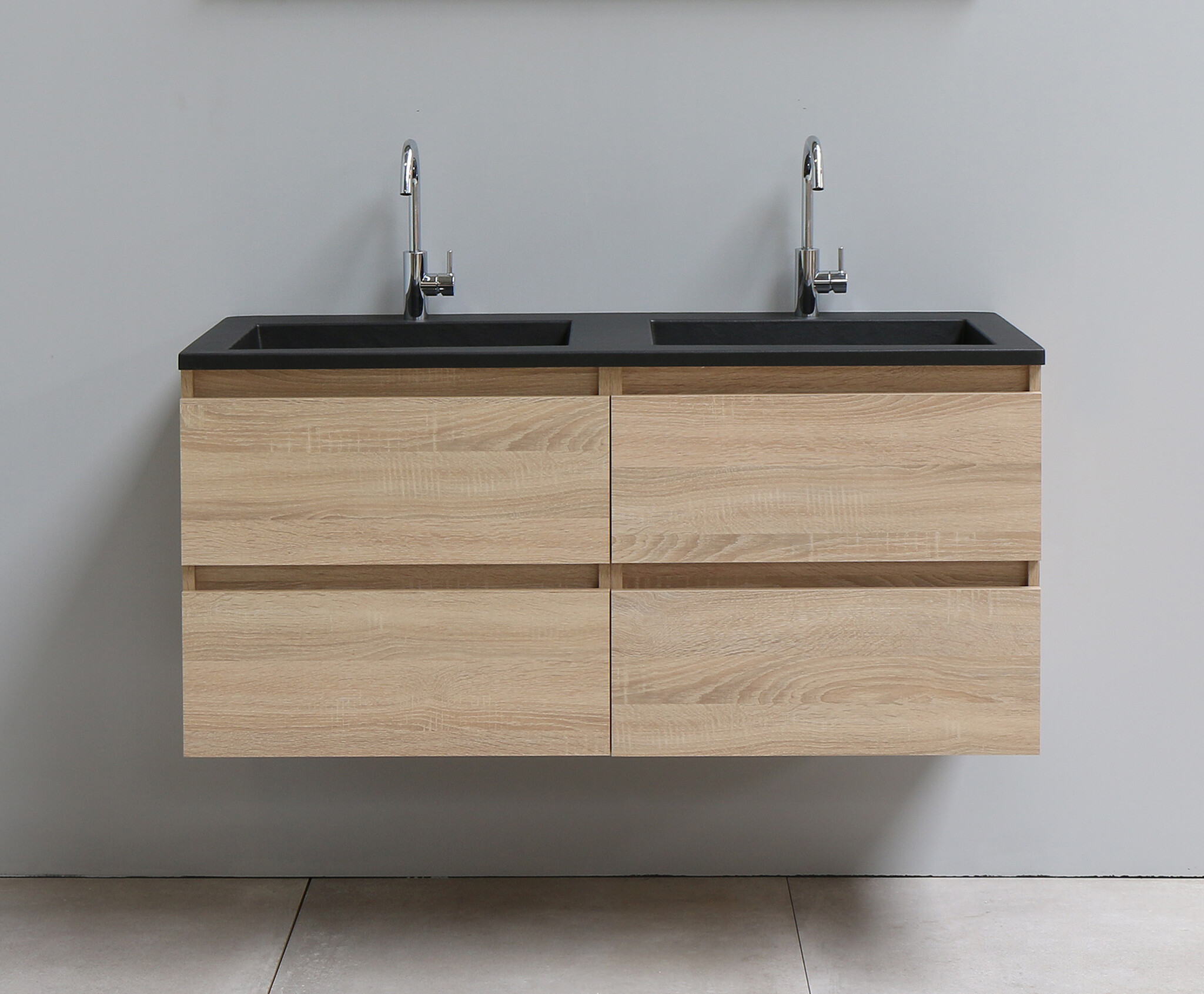 Solidline badkamermeubelset | 120cm | Acryl | Mat zwart | 2 | Eiken | Zonder spiegel | Geassembleerd