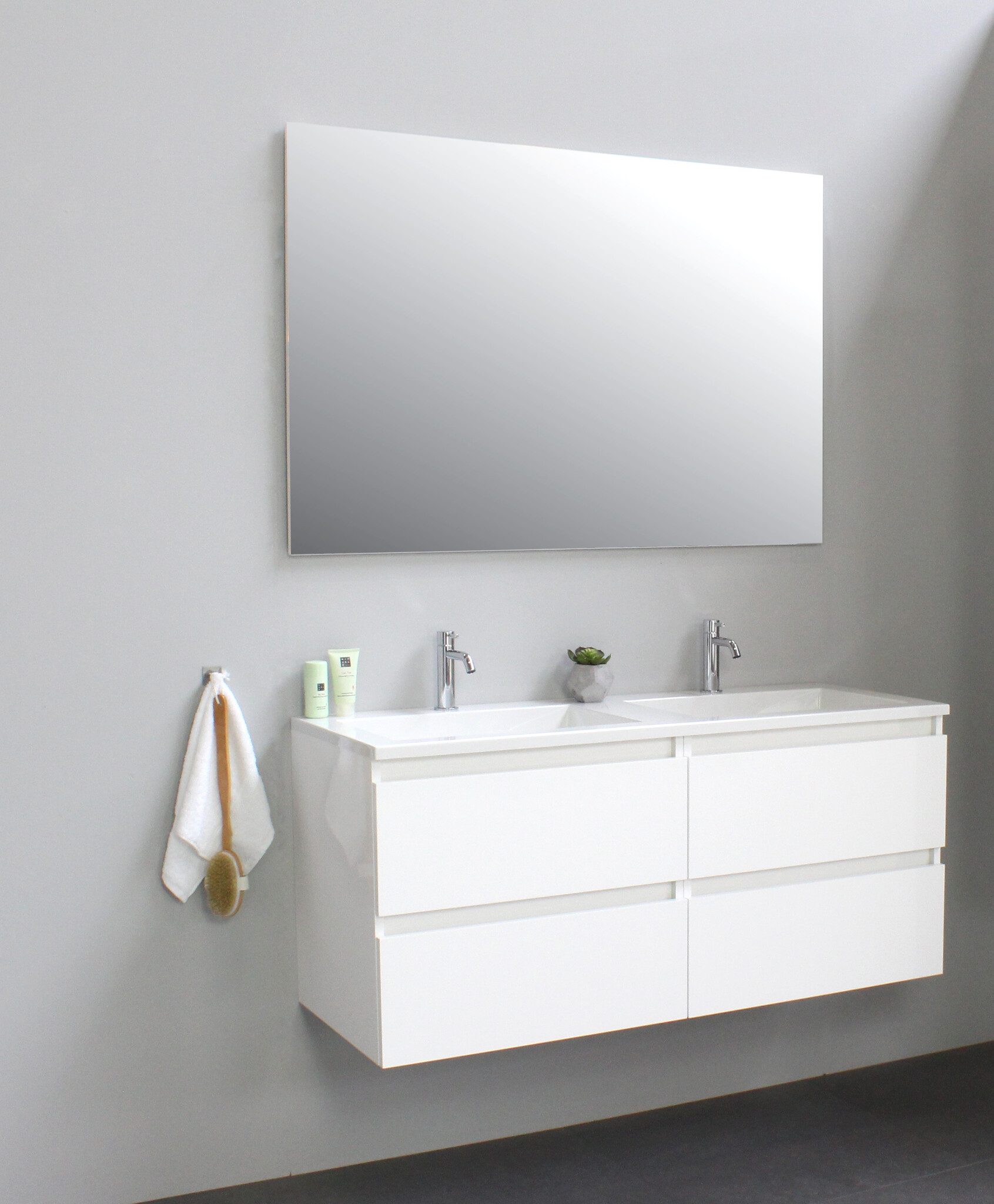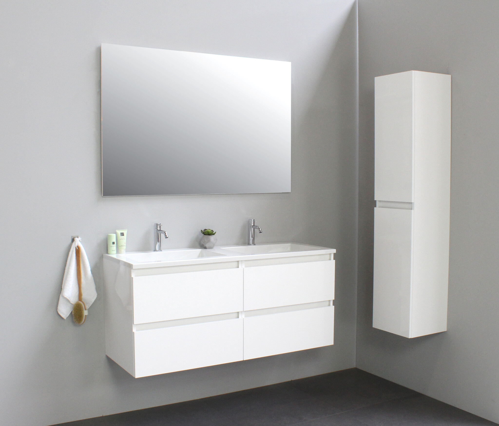 Solidline badkamermeubelset | 120cm | Acryl | Wit | 2 | Hoogglans wit | Standaard spiegel | Geassembleerd