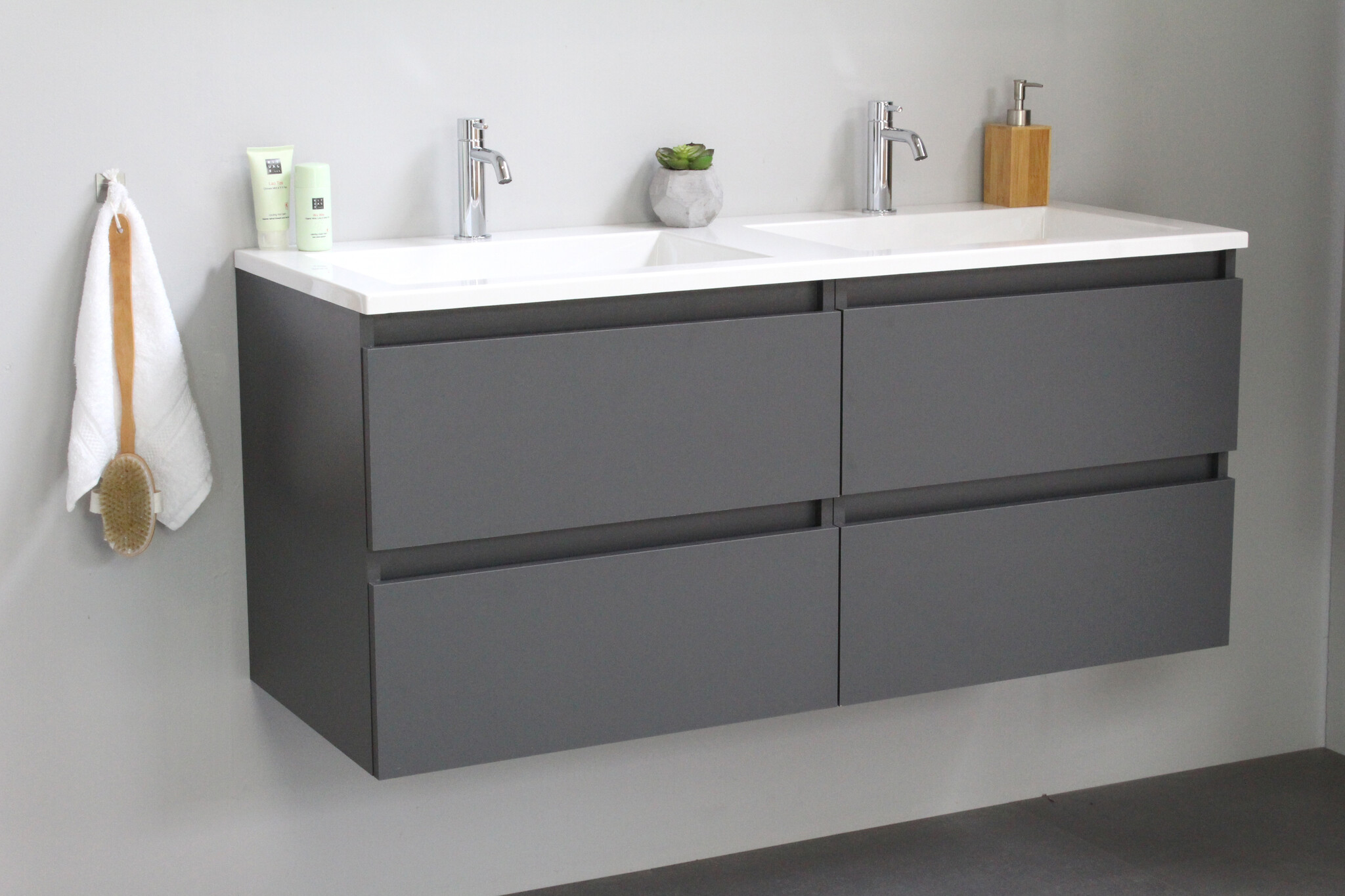 Offerte aanvraag voor Solidline badkamermeubelset | 120cm | Acryl | Wit | 2 | Mat antraciet | Zonder spiegel | Geassembleerd