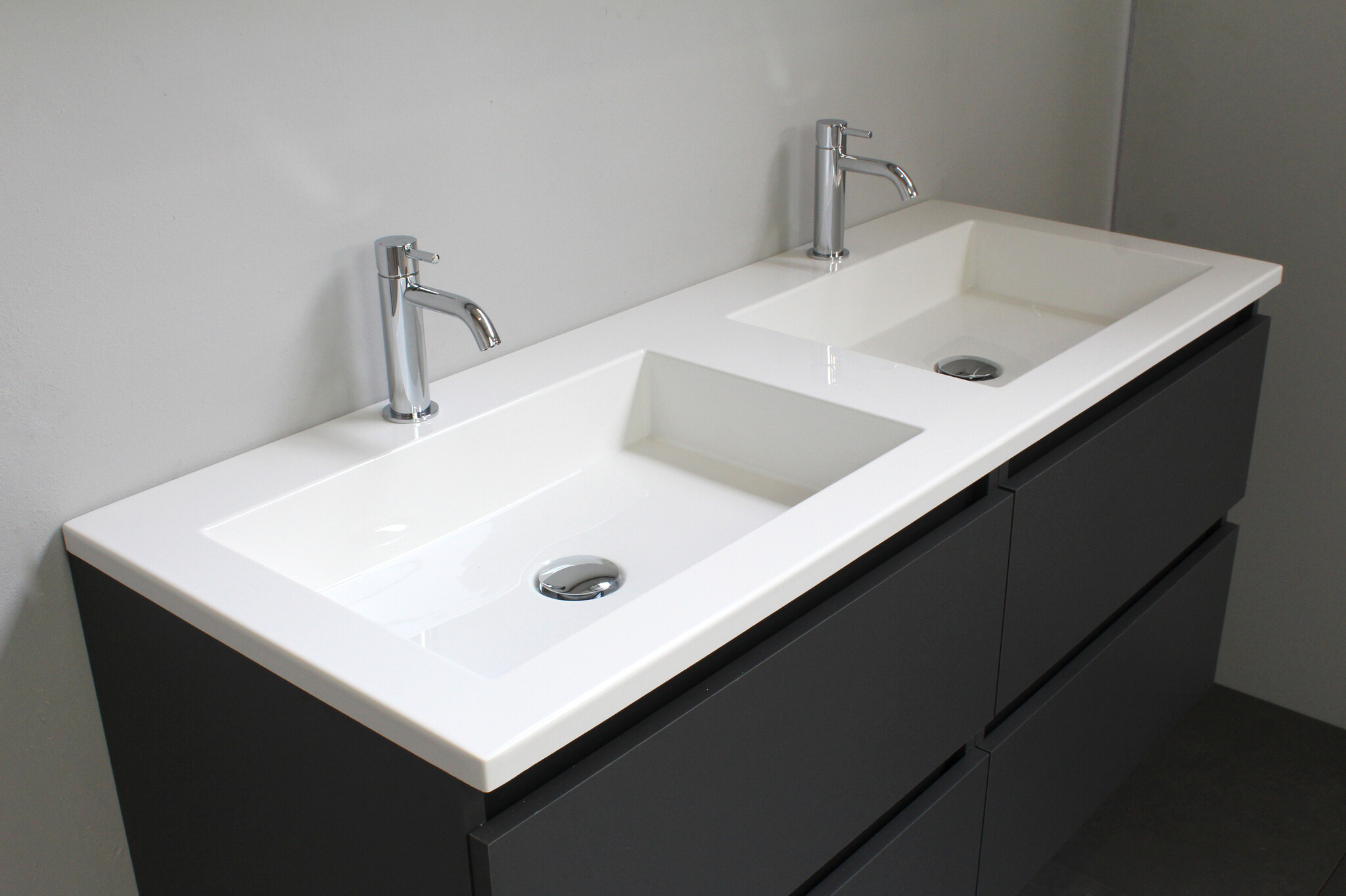 Offerte aanvraag voor Solidline badkamermeubelset | 120cm | Acryl | Wit | 2 | Mat antraciet | Spiegel met LED verlichting | Geassembleerd