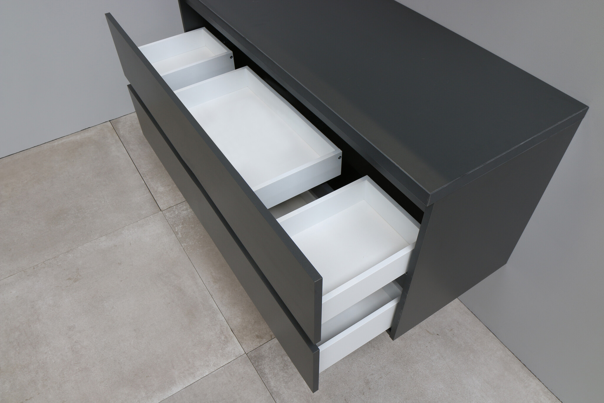 Solidline badkamermeubelset | 120cm | Acryl | Wit | 2 | Mat antraciet | Spiegel met LED verlichting | Geassembleerd