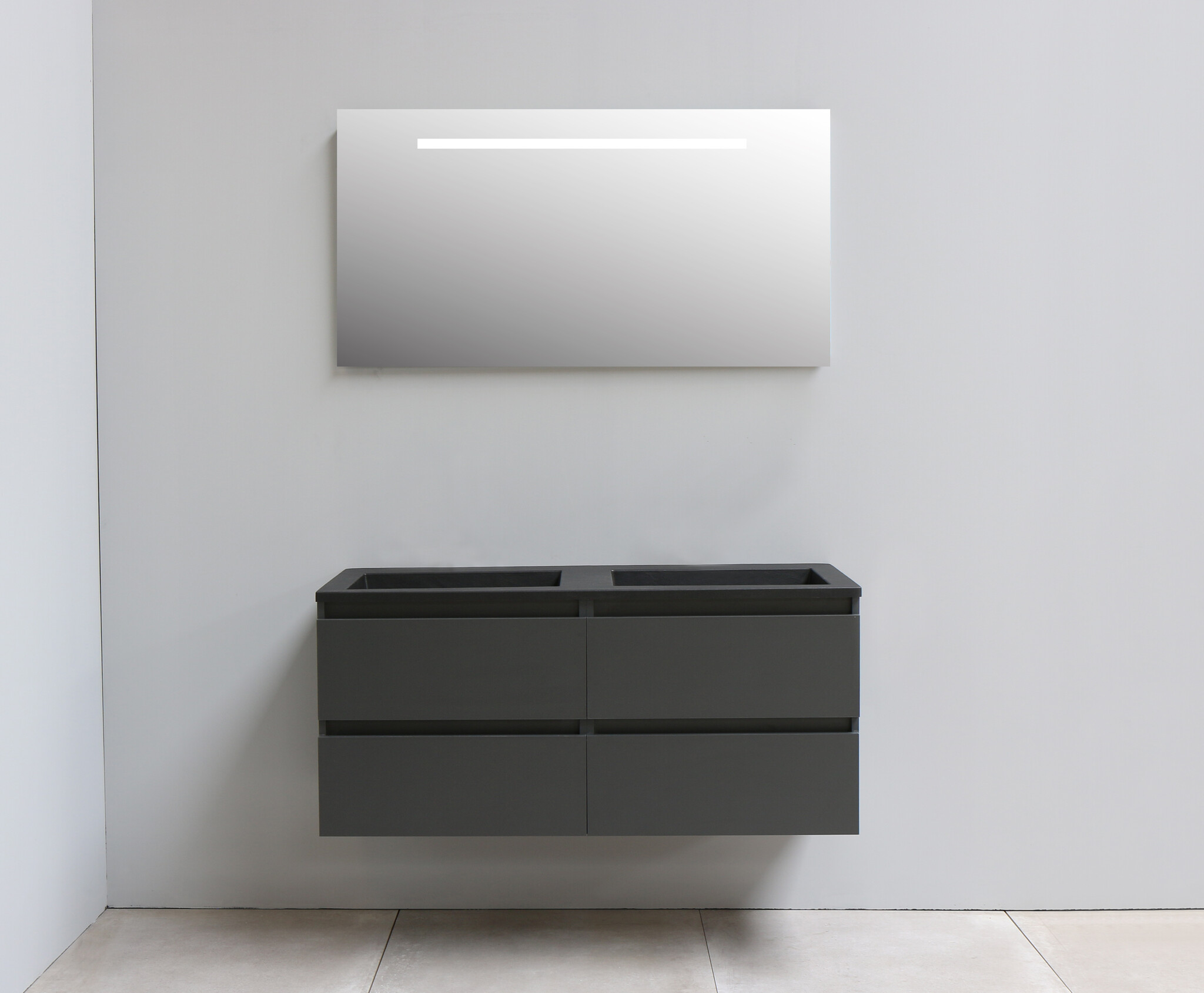 Solidline badkamermeubelset | 120cm | Acryl | Mat zwart | 0 | Mat antraciet | Spiegel met LED verlichting | Geassembleerd