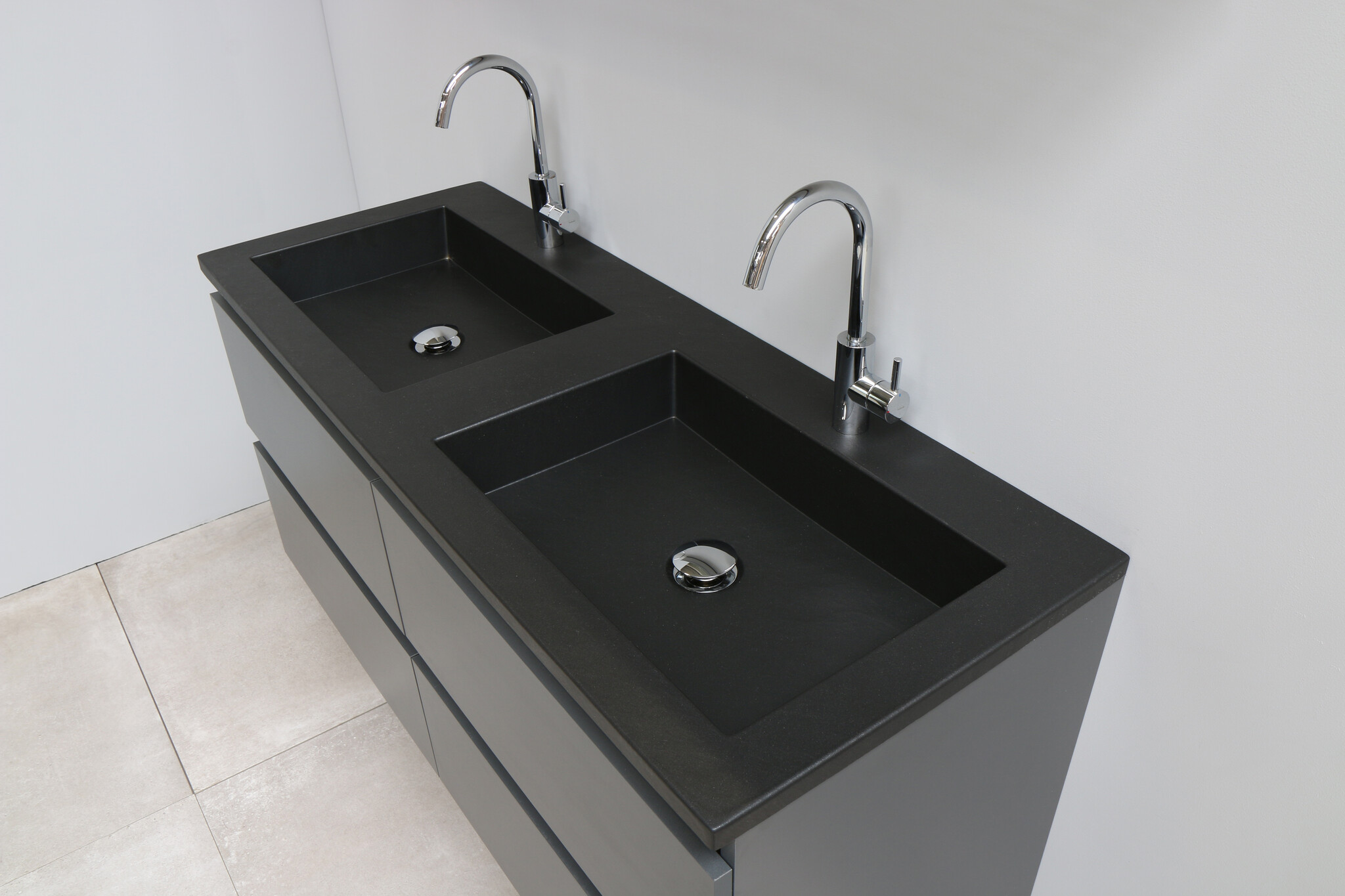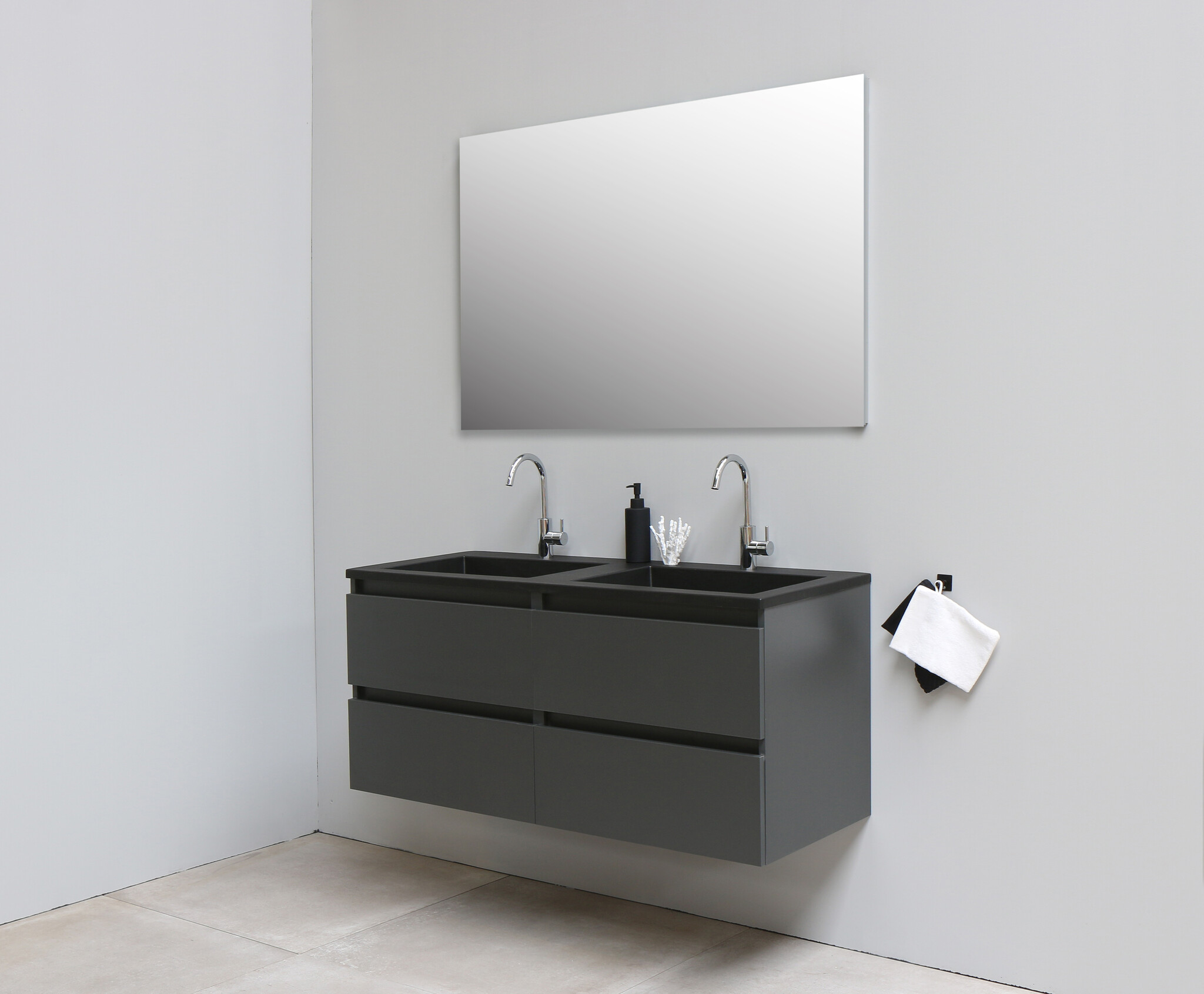 Solidline badkamermeubelset | 120cm | Acryl | Mat zwart | 2 | Mat antraciet | Standaard spiegel | Geassembleerd