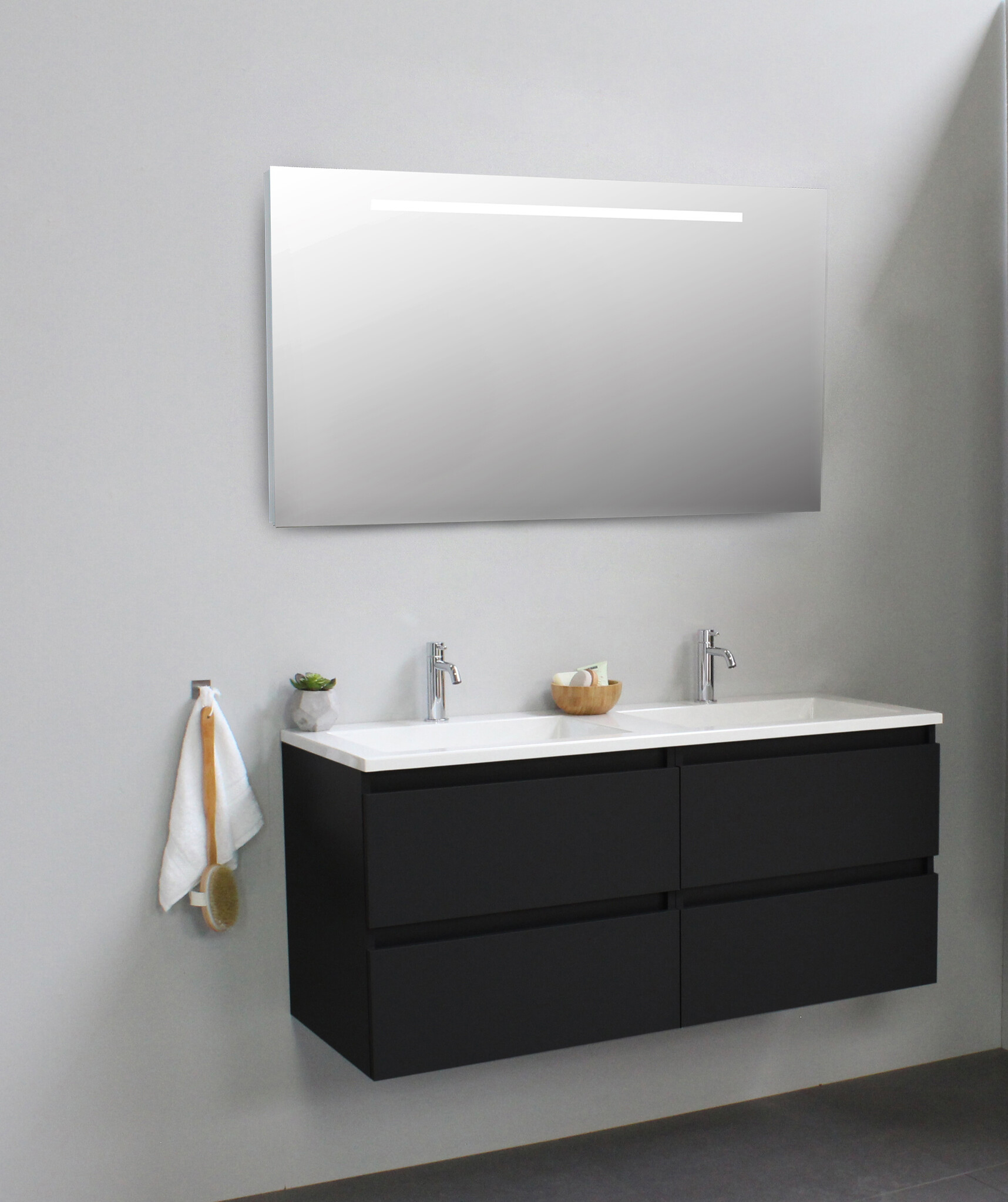 Solidline badkamermeubelset - 120cm - Acryl - Wit - 2 - Mat zwart - Spiegel met LED verlichting - Geassembleerd
