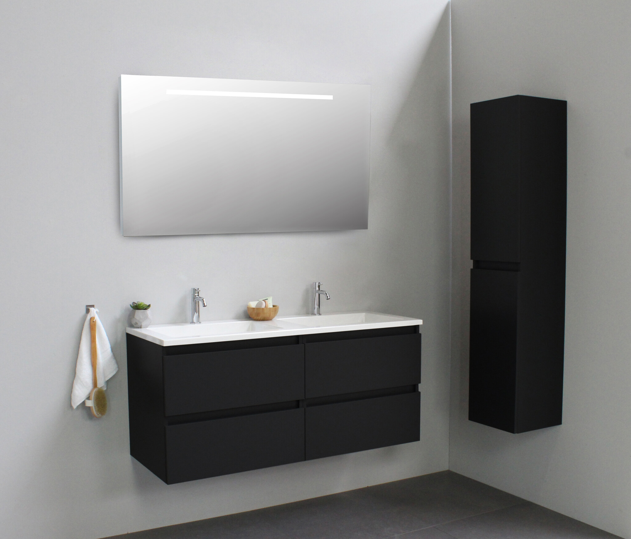 Solidline badkamermeubelset | 120cm | Acryl | Wit | 2 | Mat zwart | Spiegel met LED verlichting | Geassembleerd