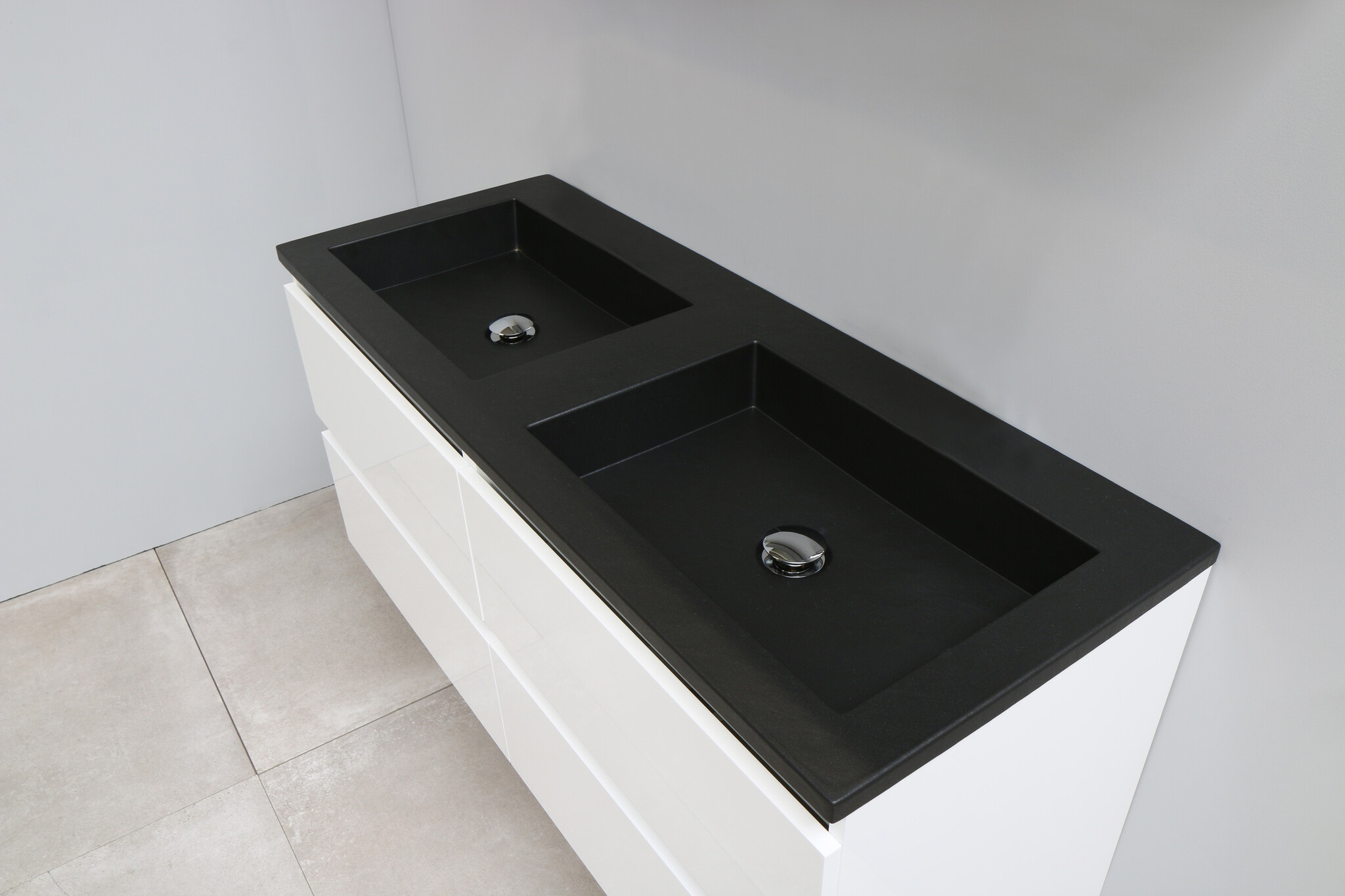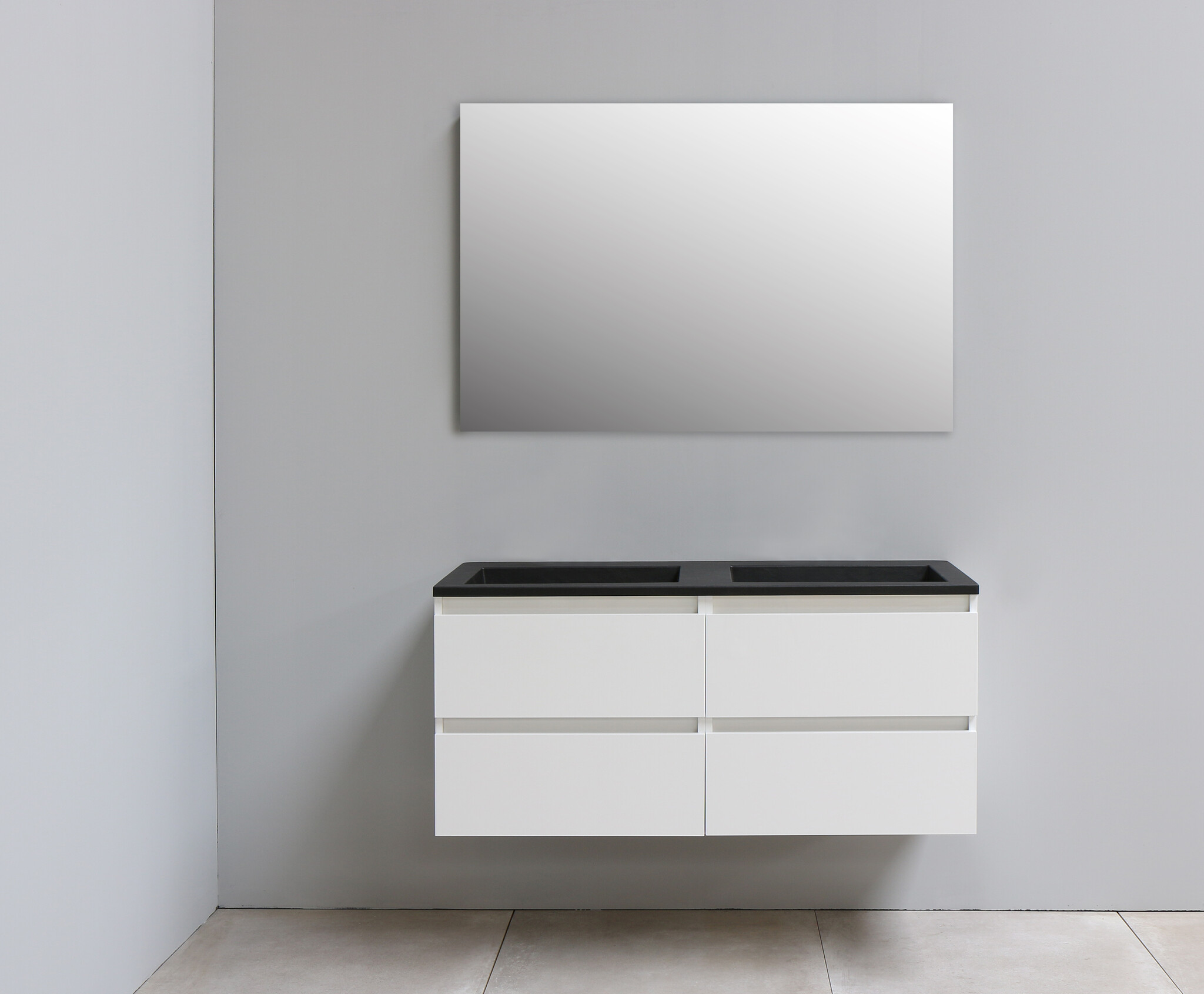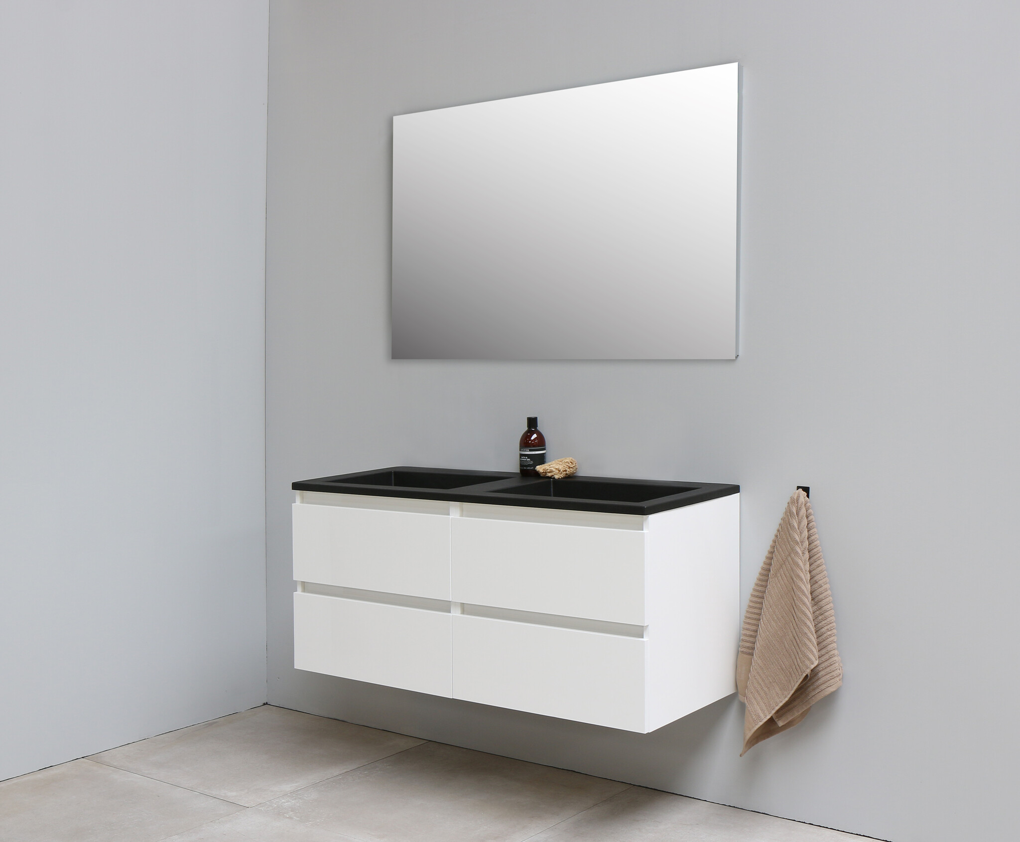 Solidline badkamermeubelset | 120cm | Acryl | Mat zwart | 1 | Hoogglans wit | Standaard spiegel | Bouwpakket