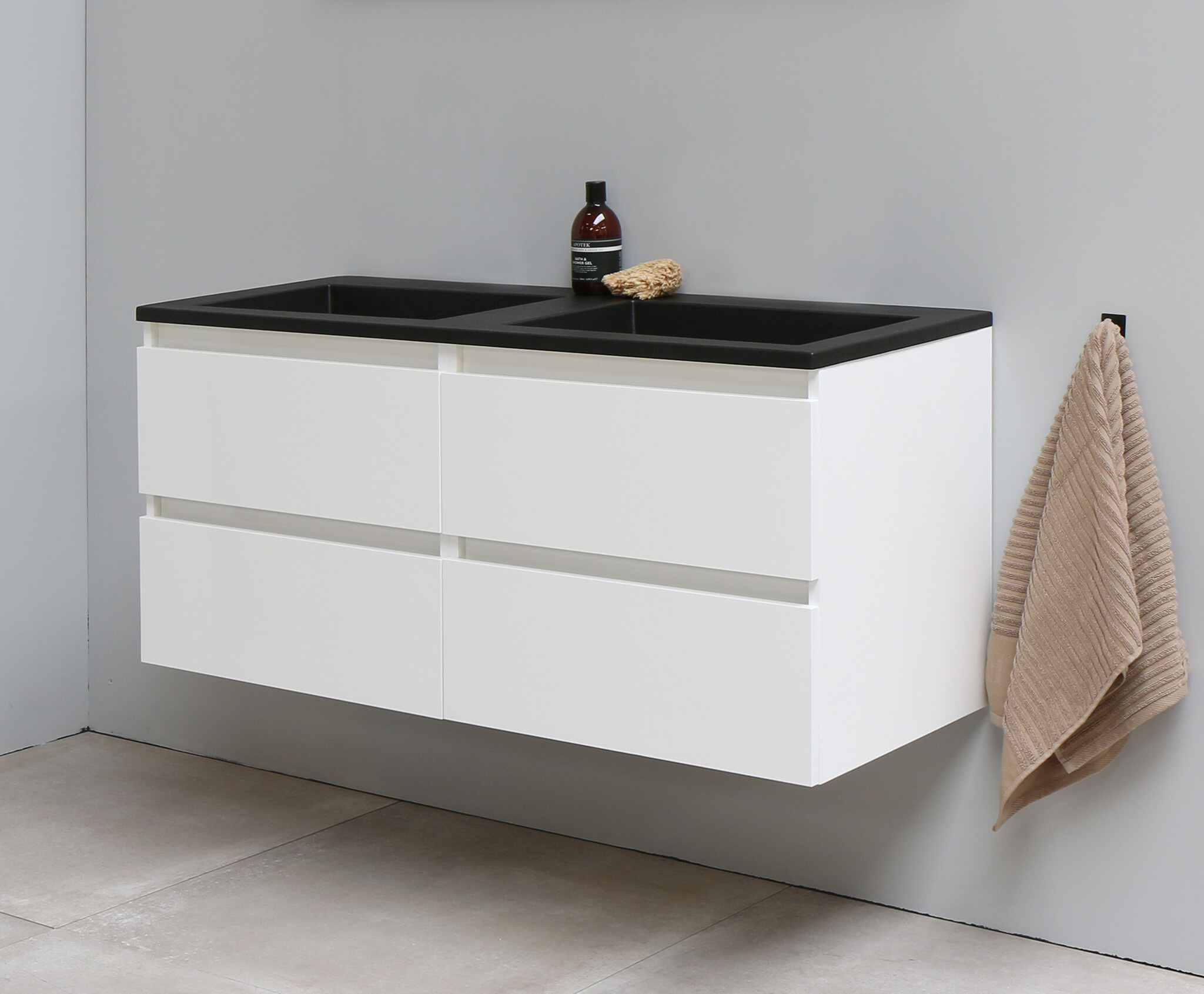 Solidline badkamermeubelset | 120cm | Acryl | Mat zwart | 1 | Hoogglans wit | Zonder spiegel | Geassembleerd