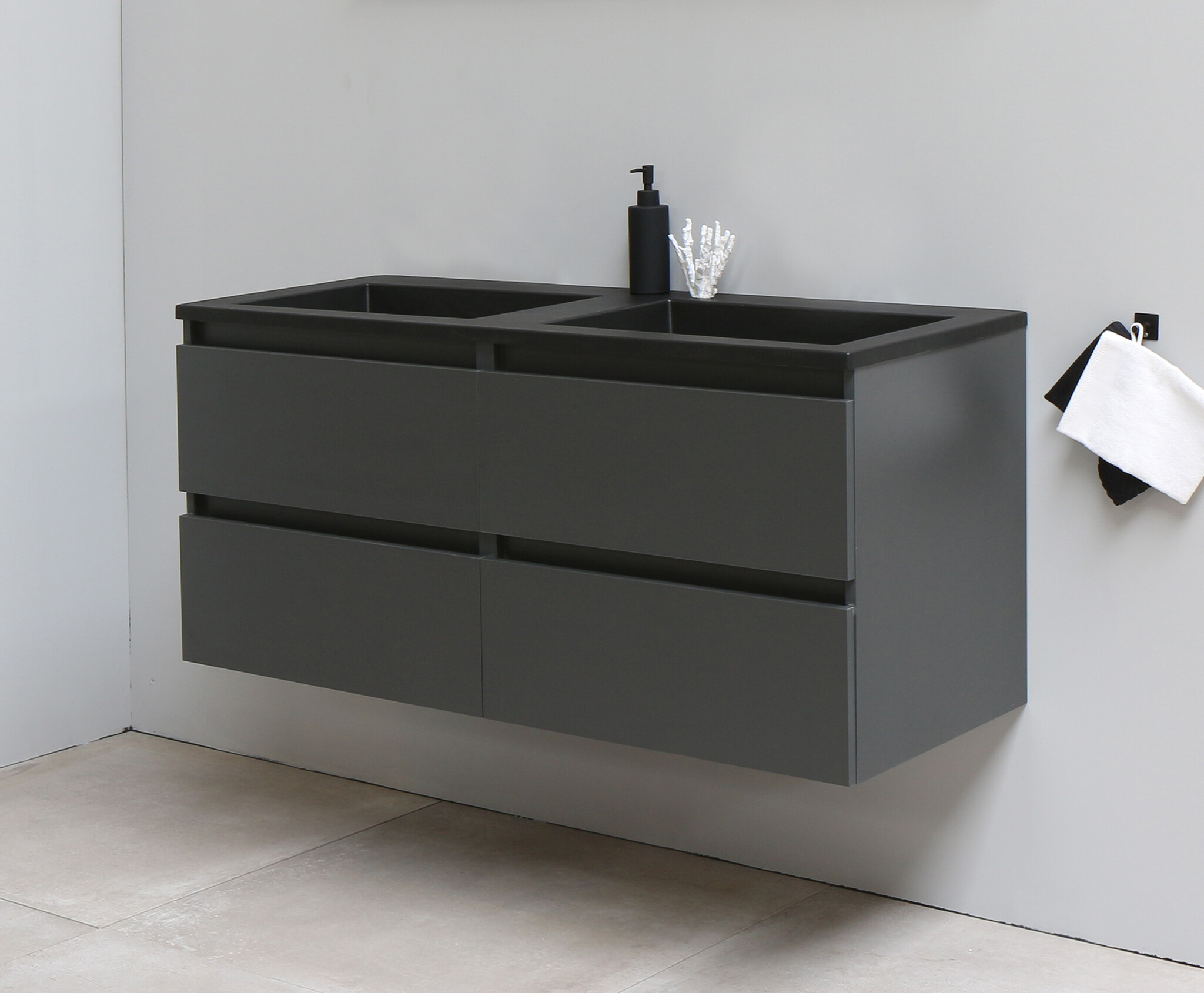 Solidline badkamermeubelset - 120cm - Acryl - Mat zwart - 1 - Mat antraciet - Zonder spiegel - Geassembleerd