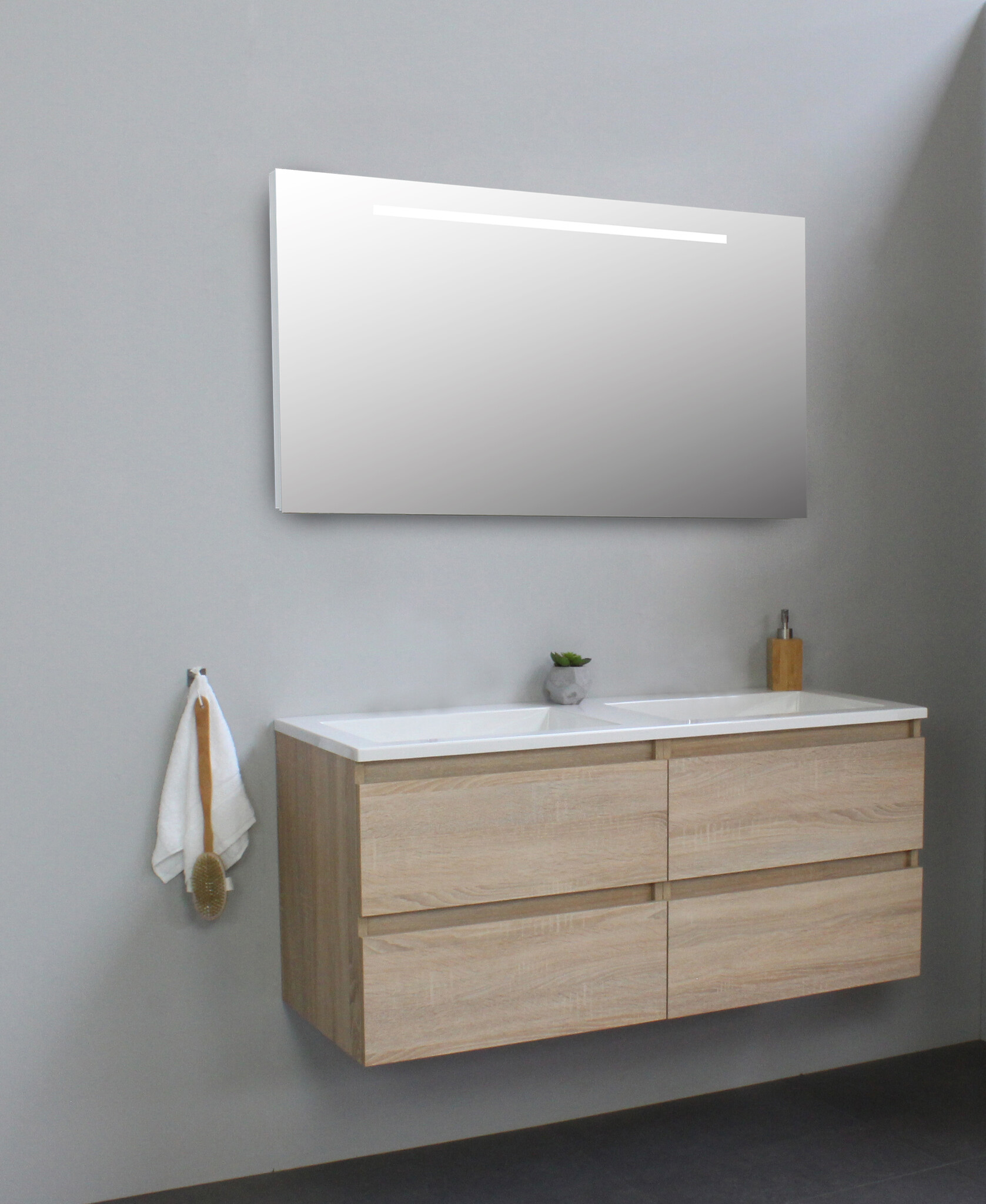 Solidline badkamermeubelset | 120cm | Acryl | Wit | 1 | Eiken | Spiegel met LED verlichting | Bouwpakket