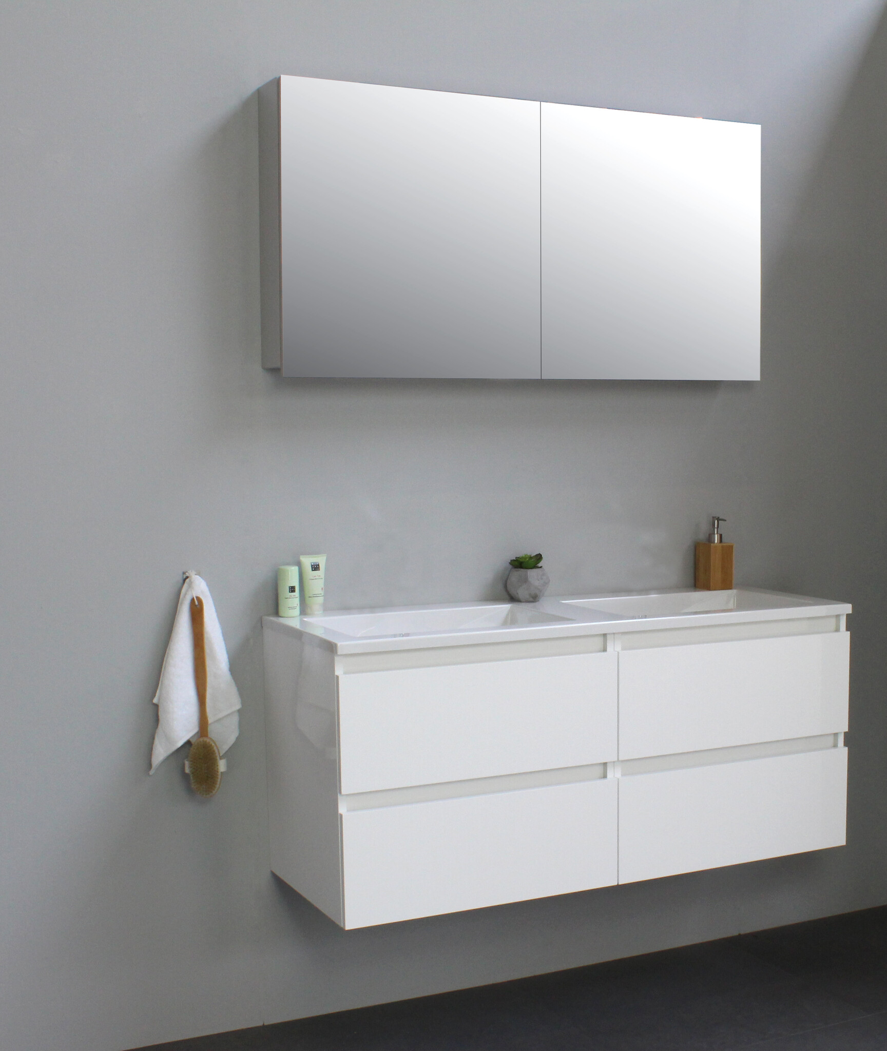 Solidline badkamermeubelset - 120cm - Acryl - Wit - 1 - Hoogglans wit - Met spiegelkast - Geassembleerd