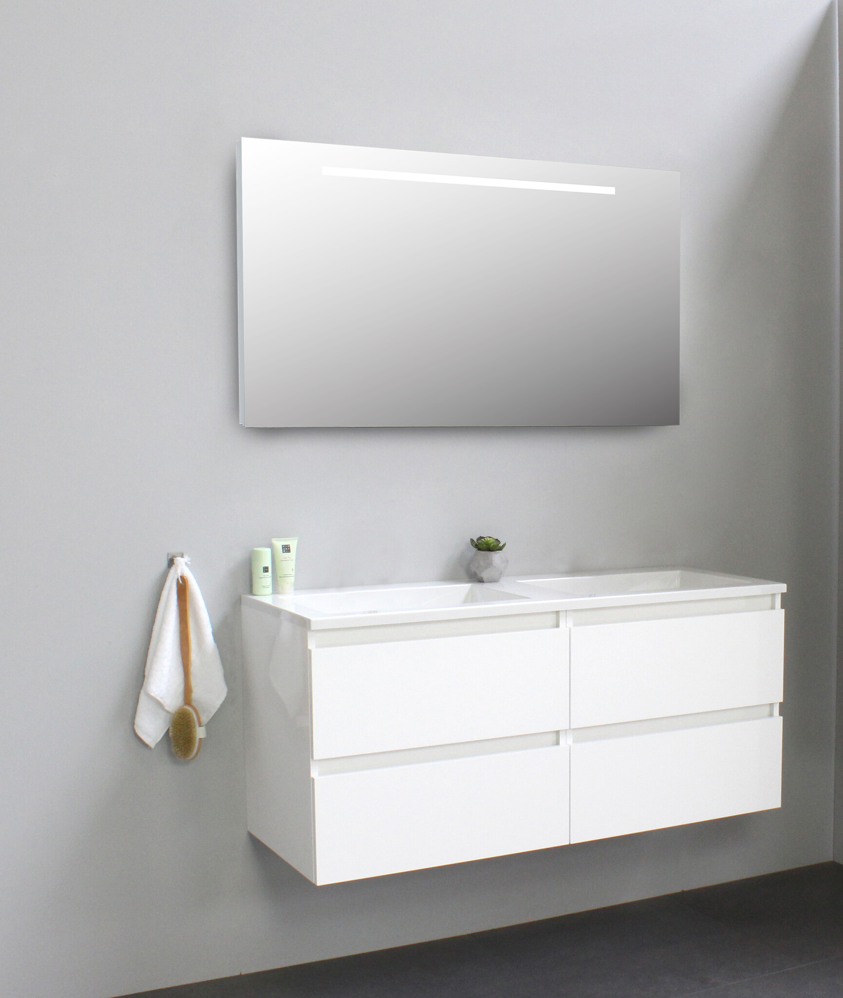 Solidline badkamermeubelset - 120cm - Acryl - Wit - 1 - Hoogglans wit - Spiegel met LED verlichting - Geassembleerd