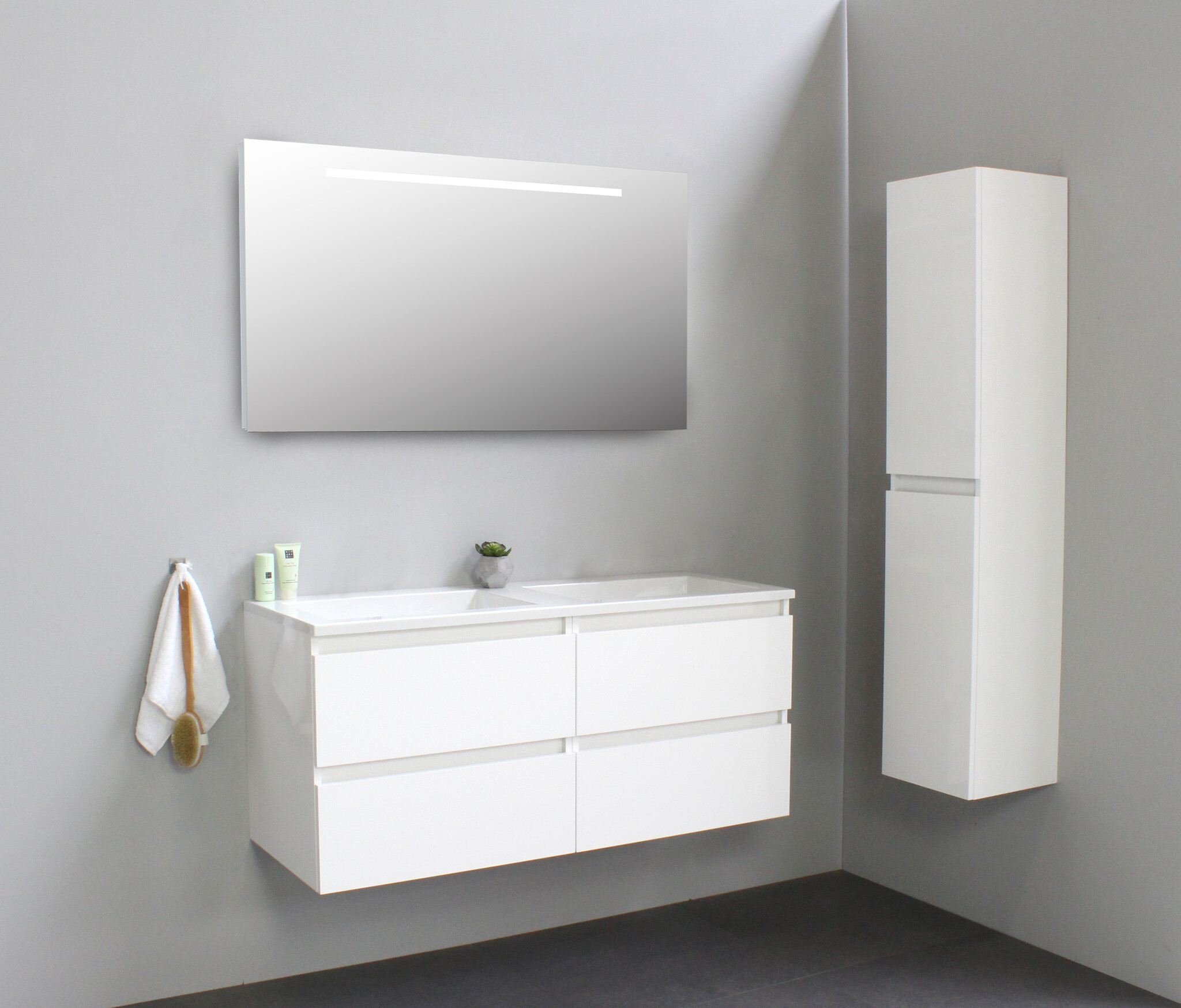 Solidline badkamermeubelset | 120cm | Acryl | Wit | 1 | Hoogglans wit | Spiegel met LED verlichting | Geassembleerd