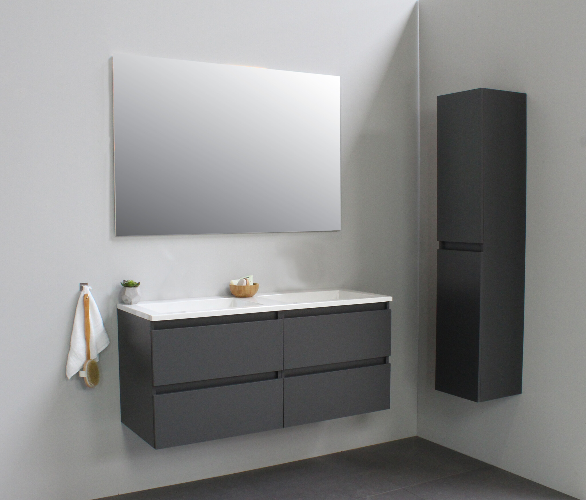 Solidline badkamermeubelset | 120cm | Acryl | Wit | 1 | Mat antraciet | Zonder spiegel | Geassembleerd