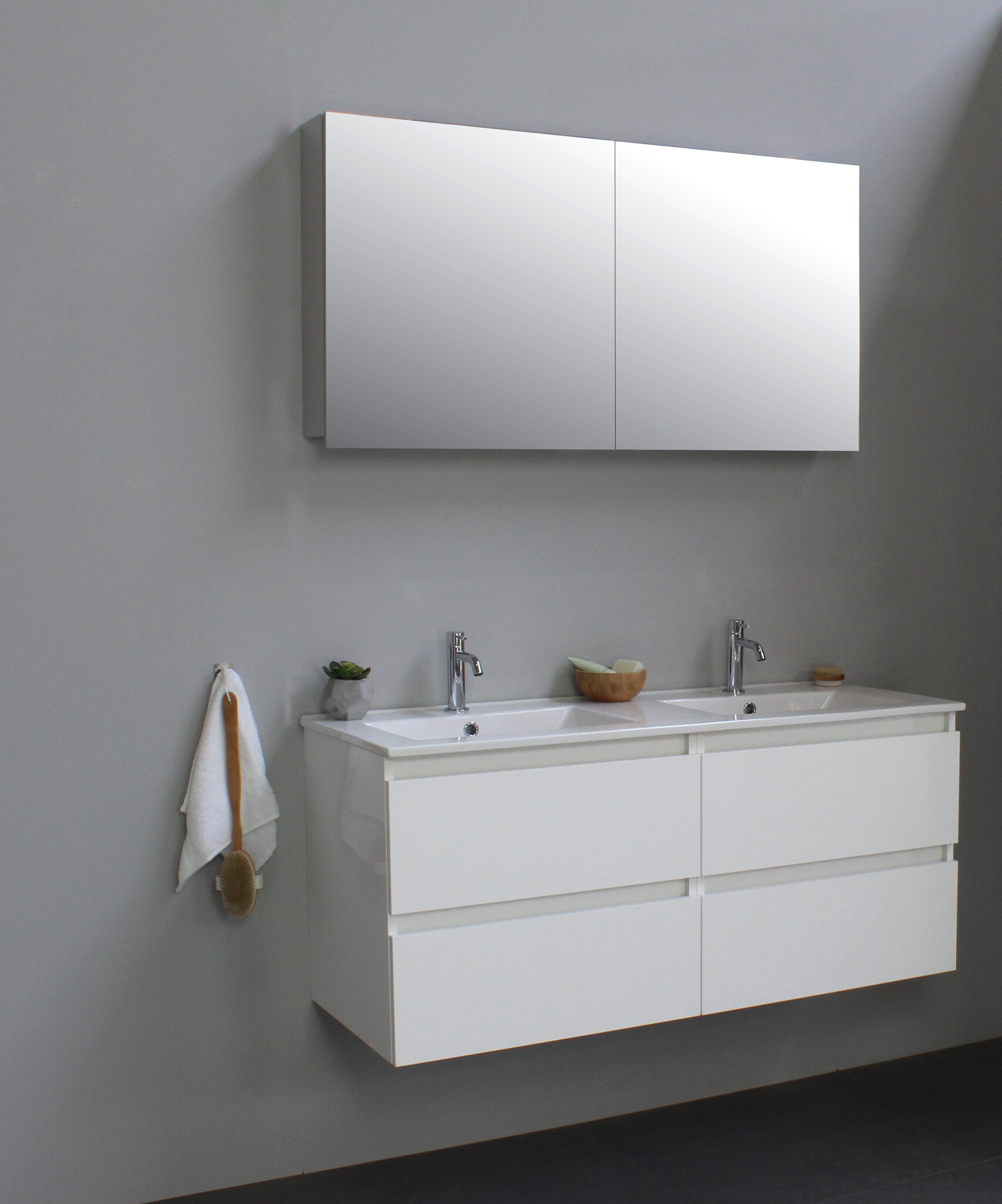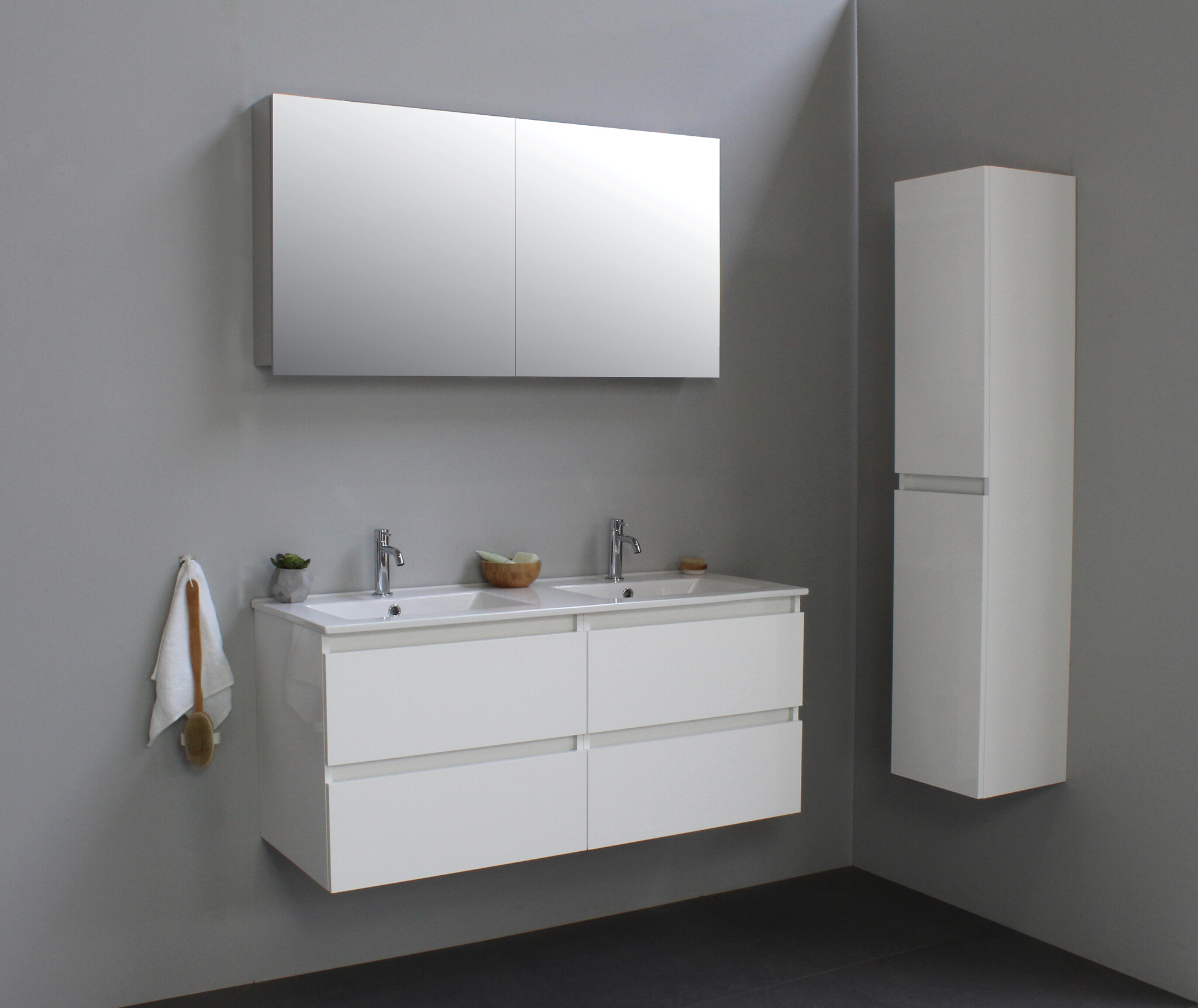 Solidline badkamermeubelset | 120cm | Keramiek | Wit | 2 | Hoogglans wit | Met spiegelkast | Bouwpakket